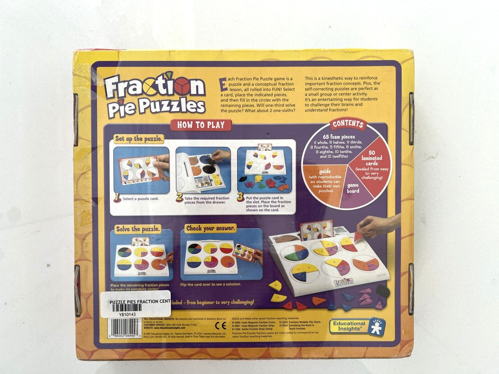 NEW SEALED Educational Insights 50 Fraction Pie Puzzles Ages 8 Summer Fractions