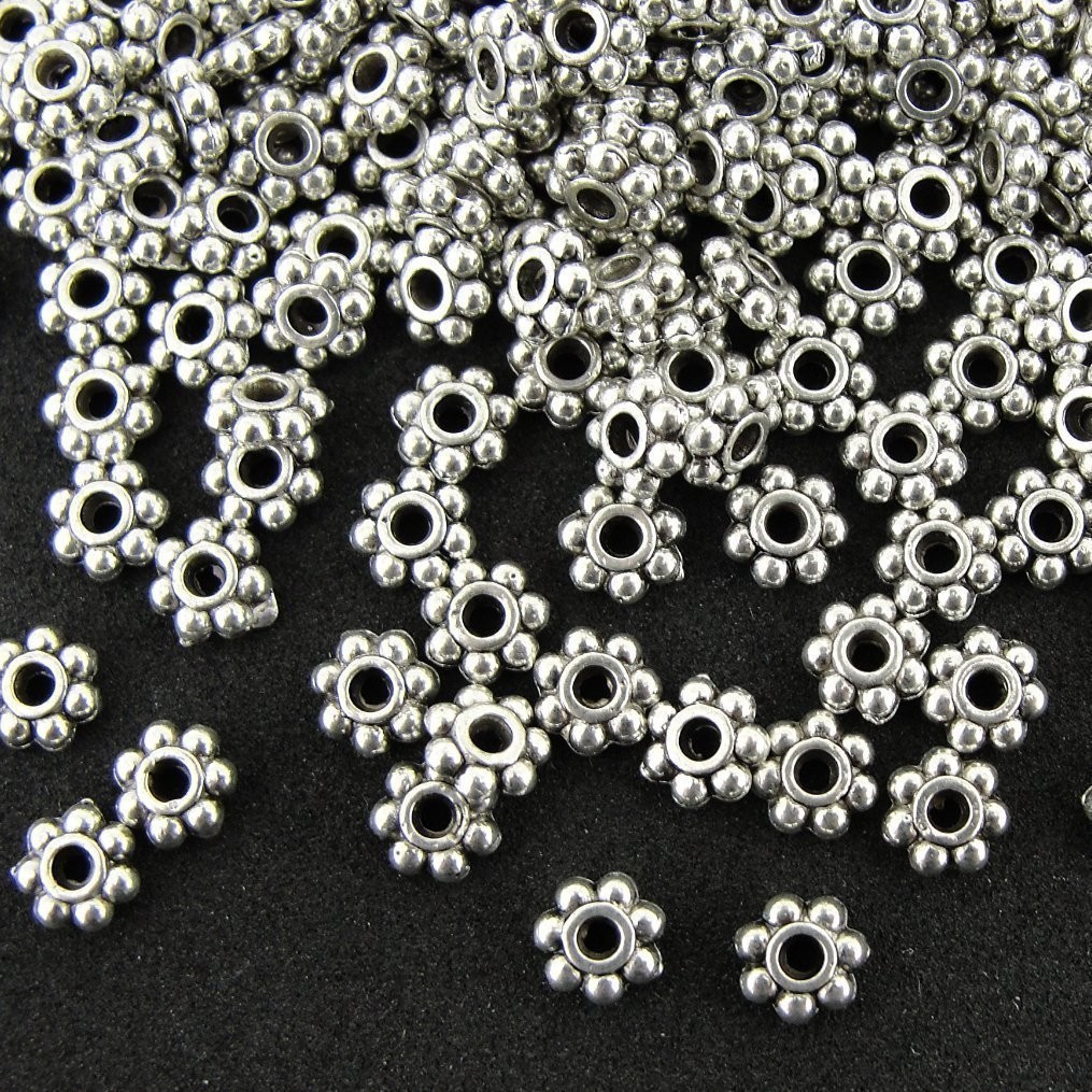 500 Pcs Antiqued Silver Daisy Spacer Metal Beads 4mm for Jewelry Making