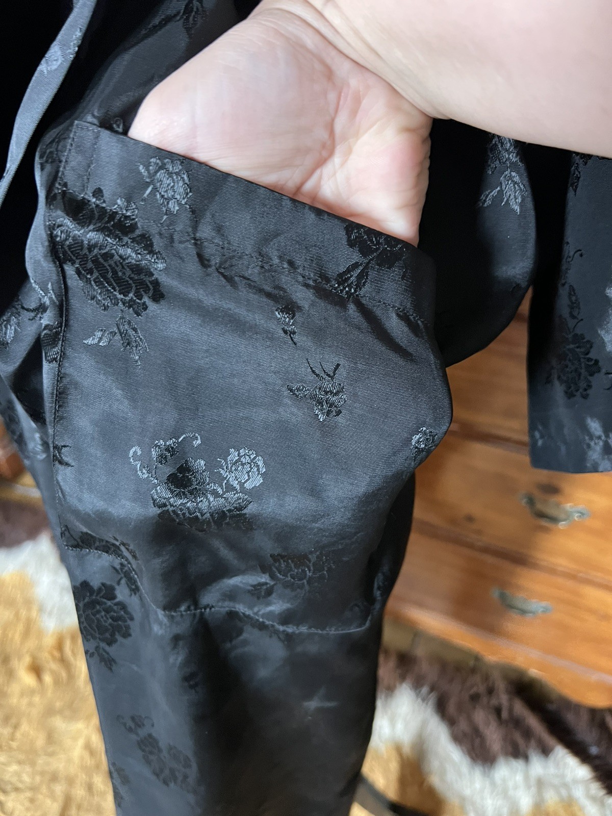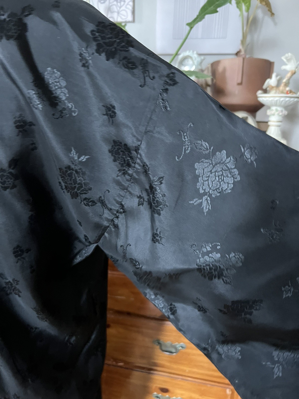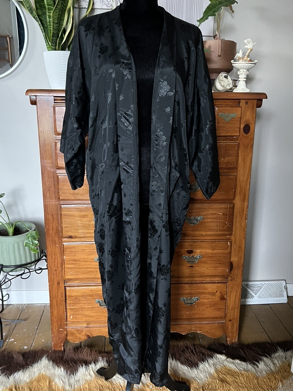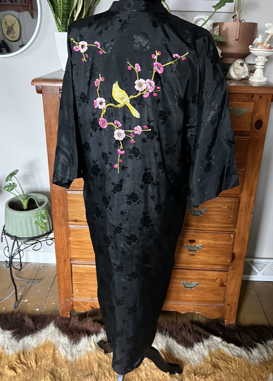 как выглядит Vintage Golden Bee Black Embroidered Kimono Robe Floral Bird Asian Jacket OS фото