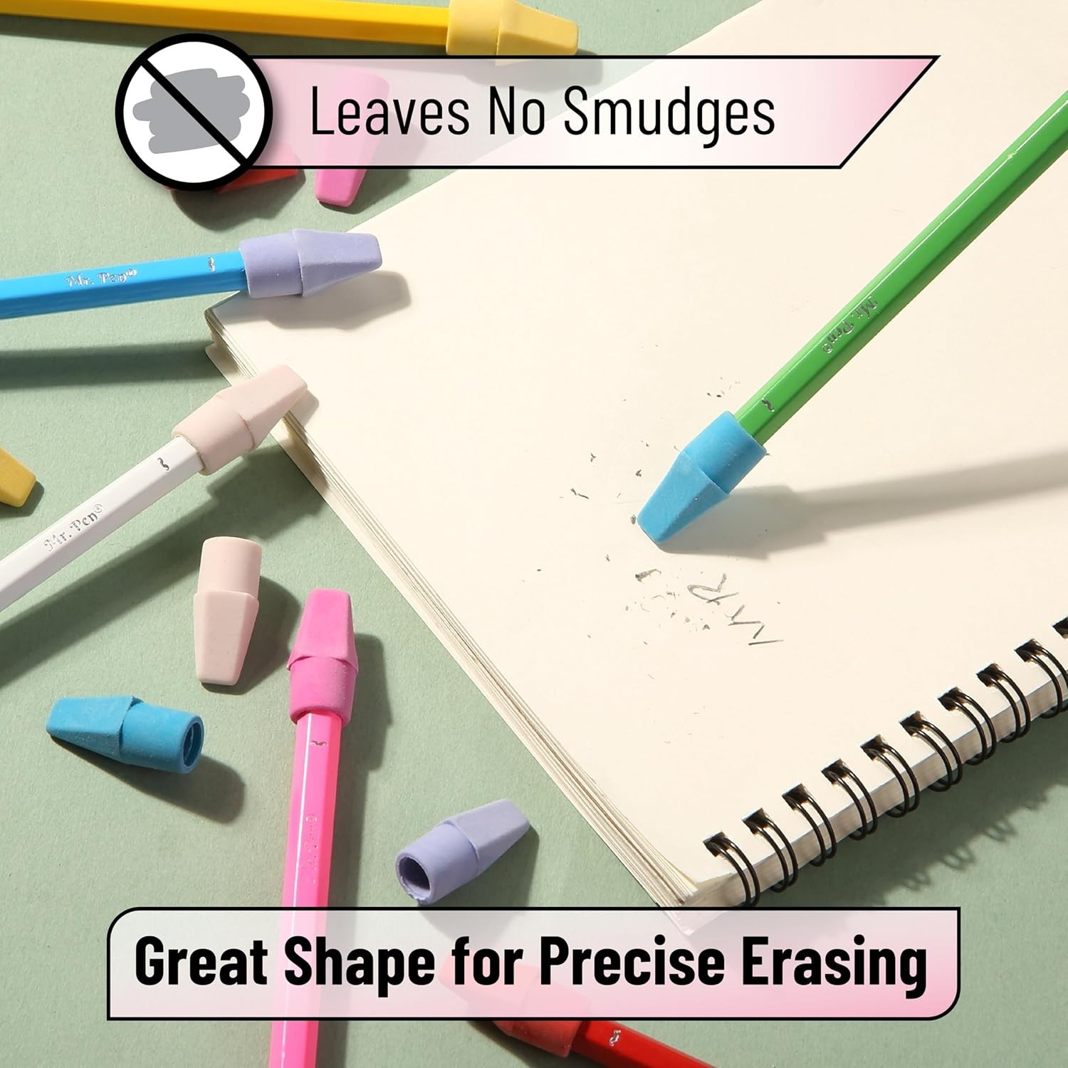 Mr. Pen Colorful Pencil Eraser Toppers, 120-Pack Durable Latex-Free