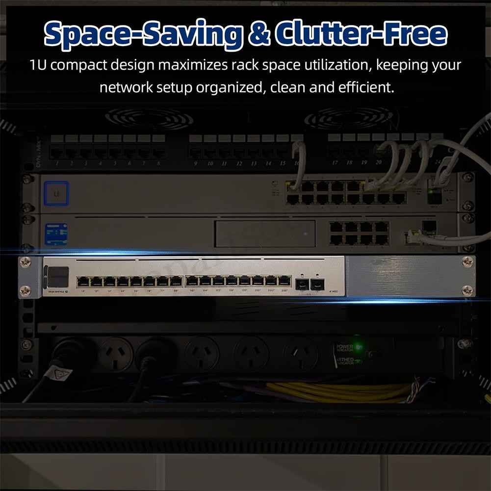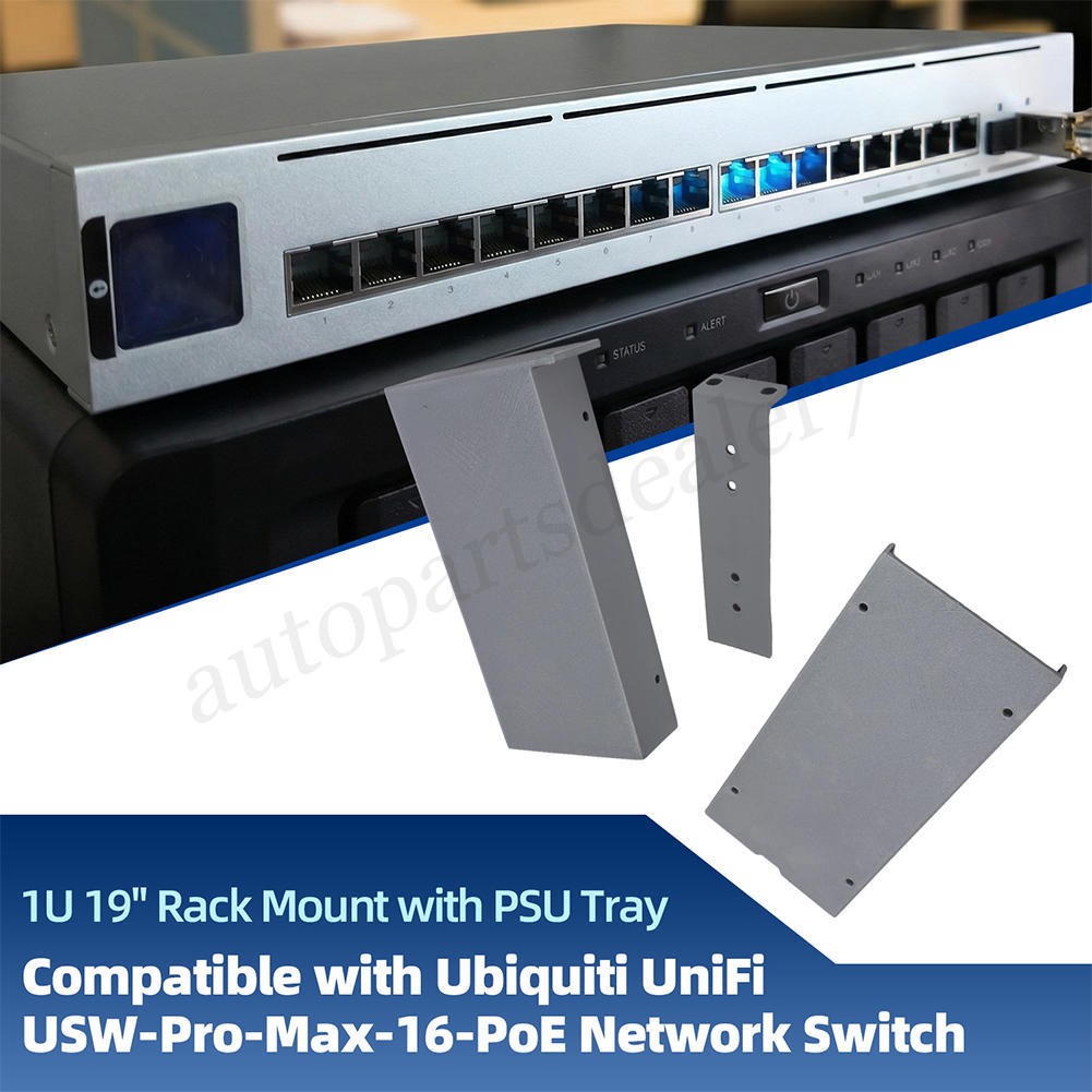 Rack Mount for UniFi USW-Pro-Max-16-PoE, 1U 19 w/ Tray for PSU Enhanced Airflow