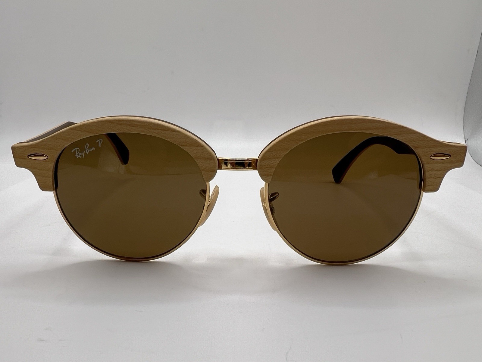 как выглядит Ray Ban Clubround Wood RB 4246-M 1178/57 Polarized Sunglasses 51-19-145 Italy фото