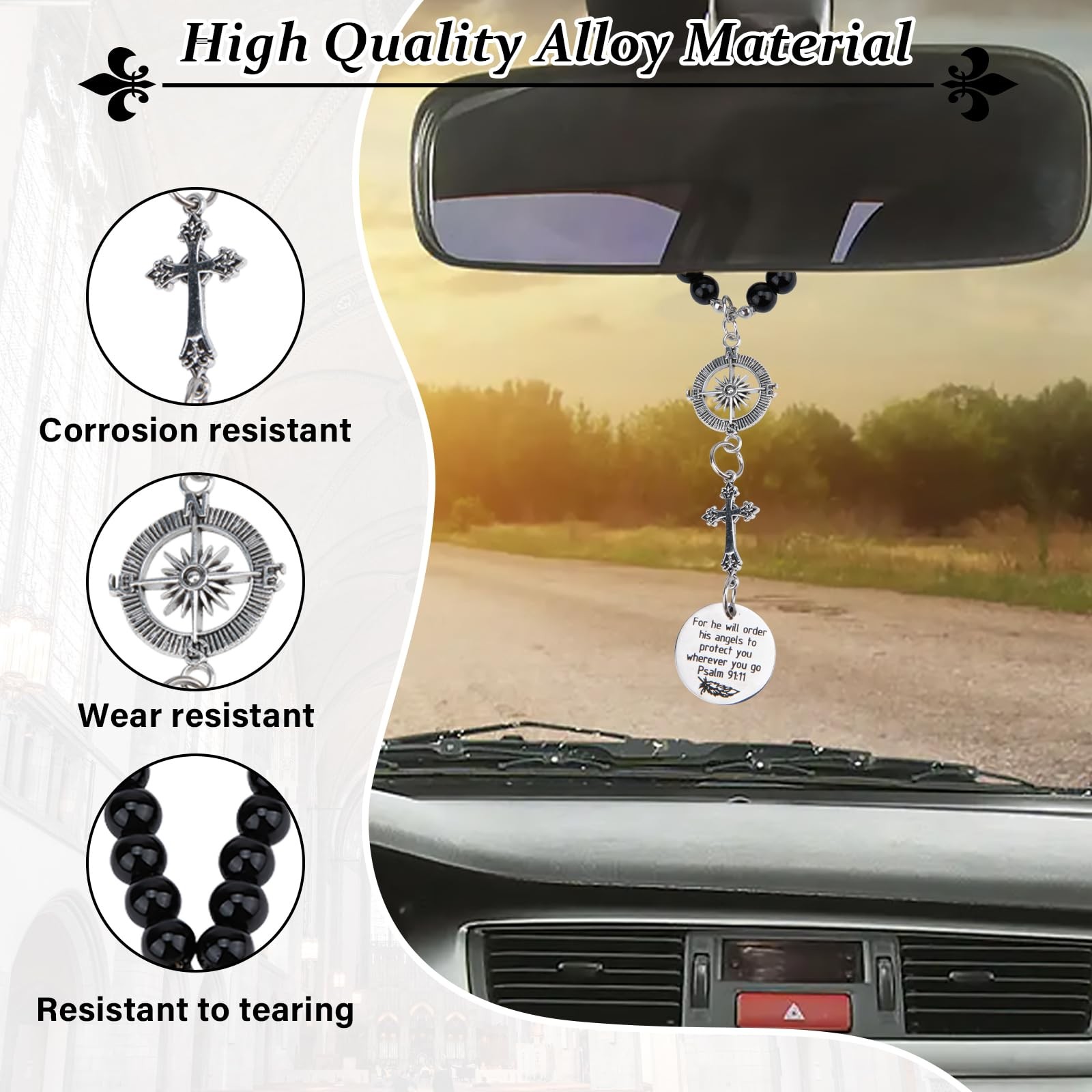Cross for Car Mirror Hanging, Metal Cross Car Charm for Rear View Mirror, Christ
