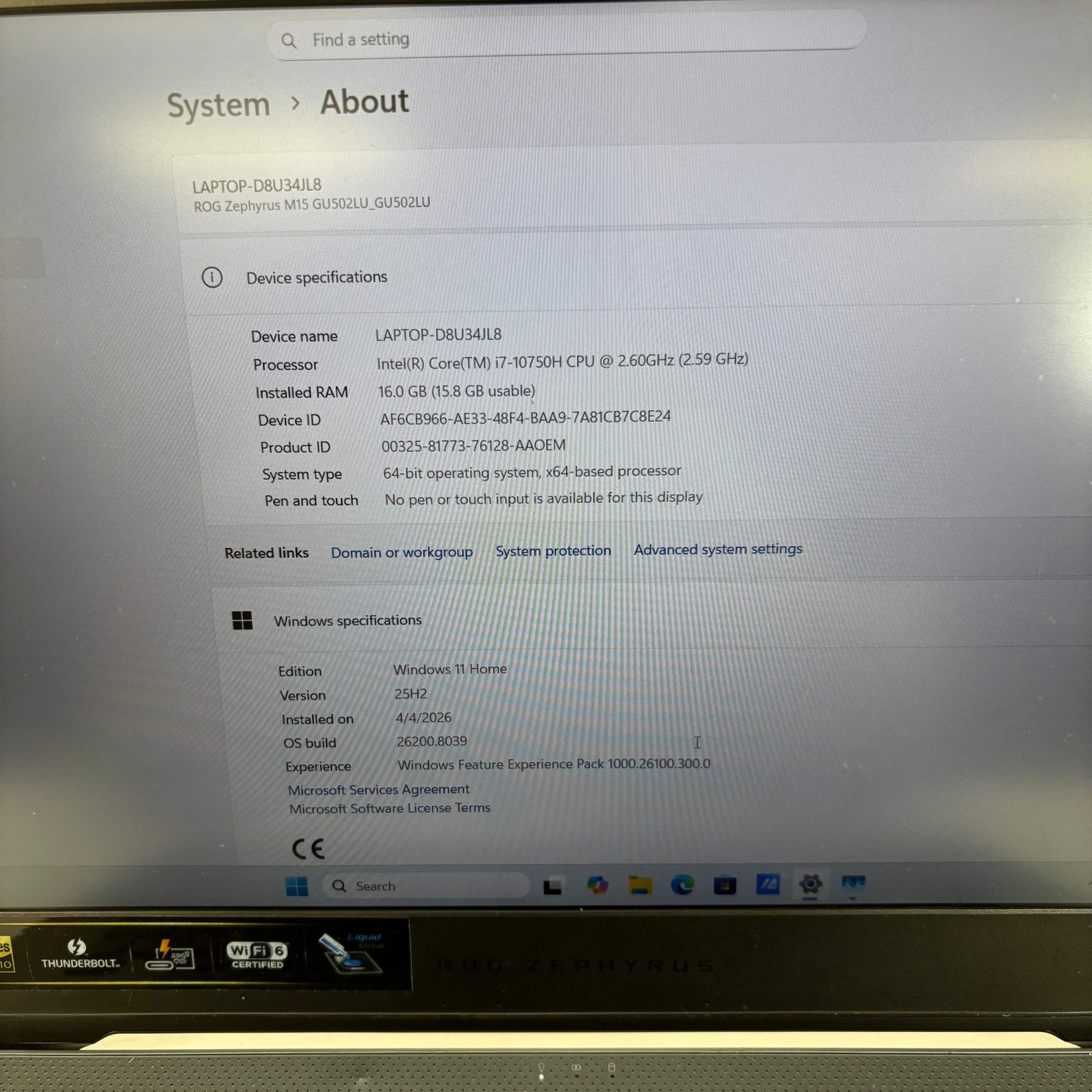 Asus ROG Zephyrus M15 GU502LU 15.6 i7-10750H 2.6GHz 16GB RAM 512GB SSD GeForce