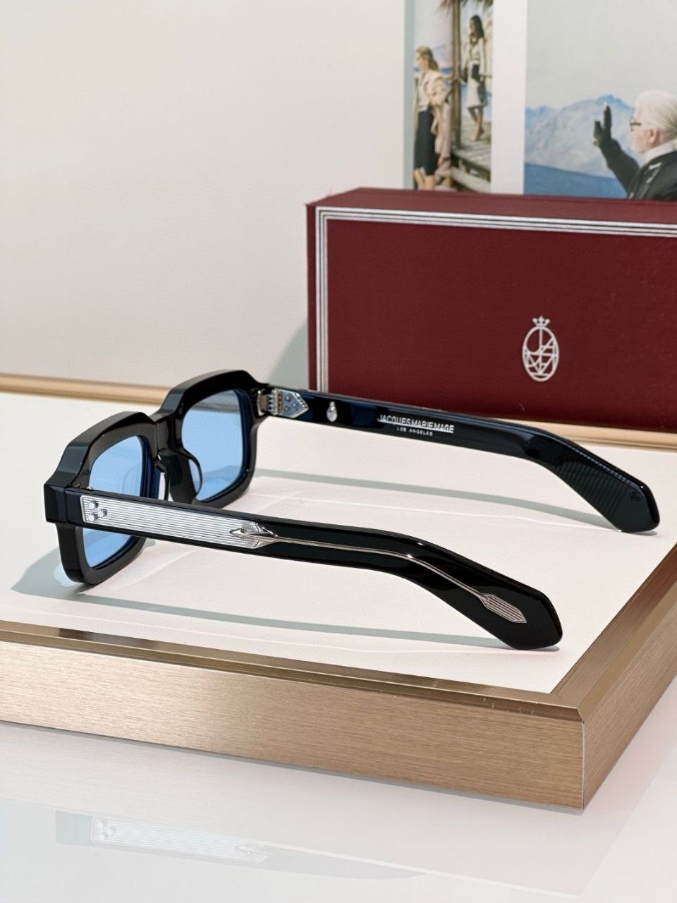 как выглядит Jacques Marie Mage Black Square Sunglasses Blue Lenses Limited Edition Handmade фото