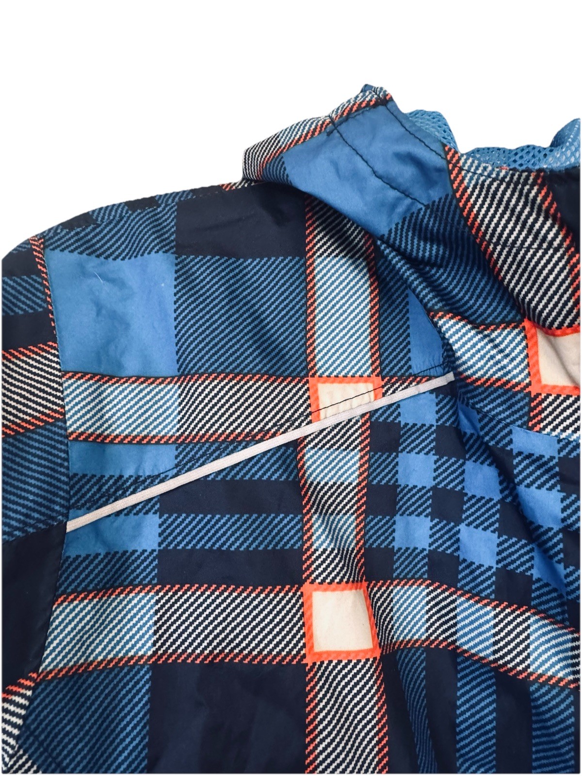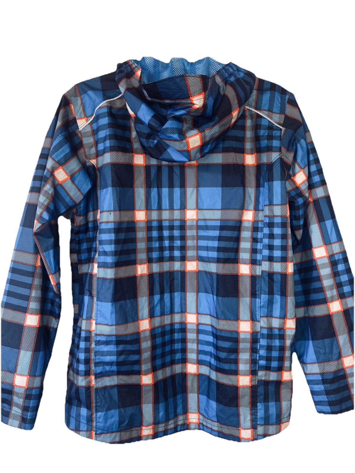 Columbia Blue Plaid Rain Hooded Zip Mesh Lined Jacket Youth L 14 16