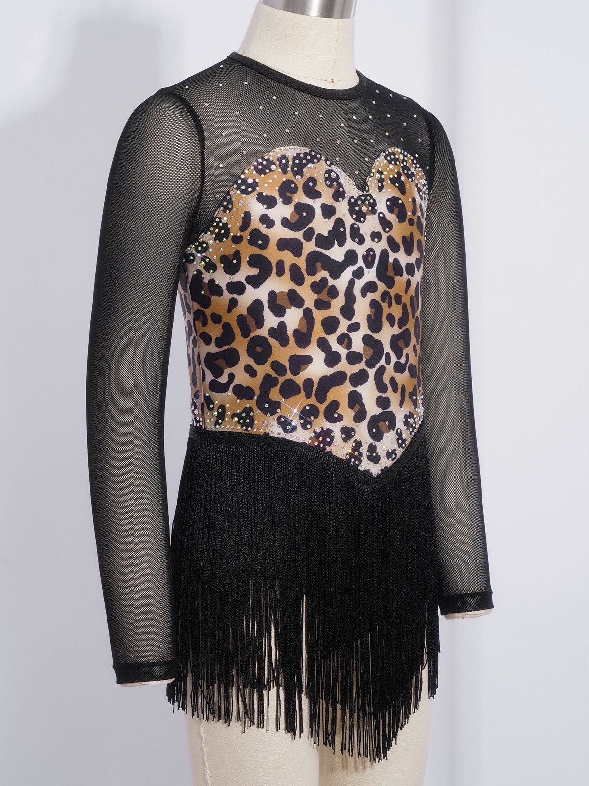 Kids Girls Leotard Latin Dancewear Ballerina Dress Fringe Competition Shiny