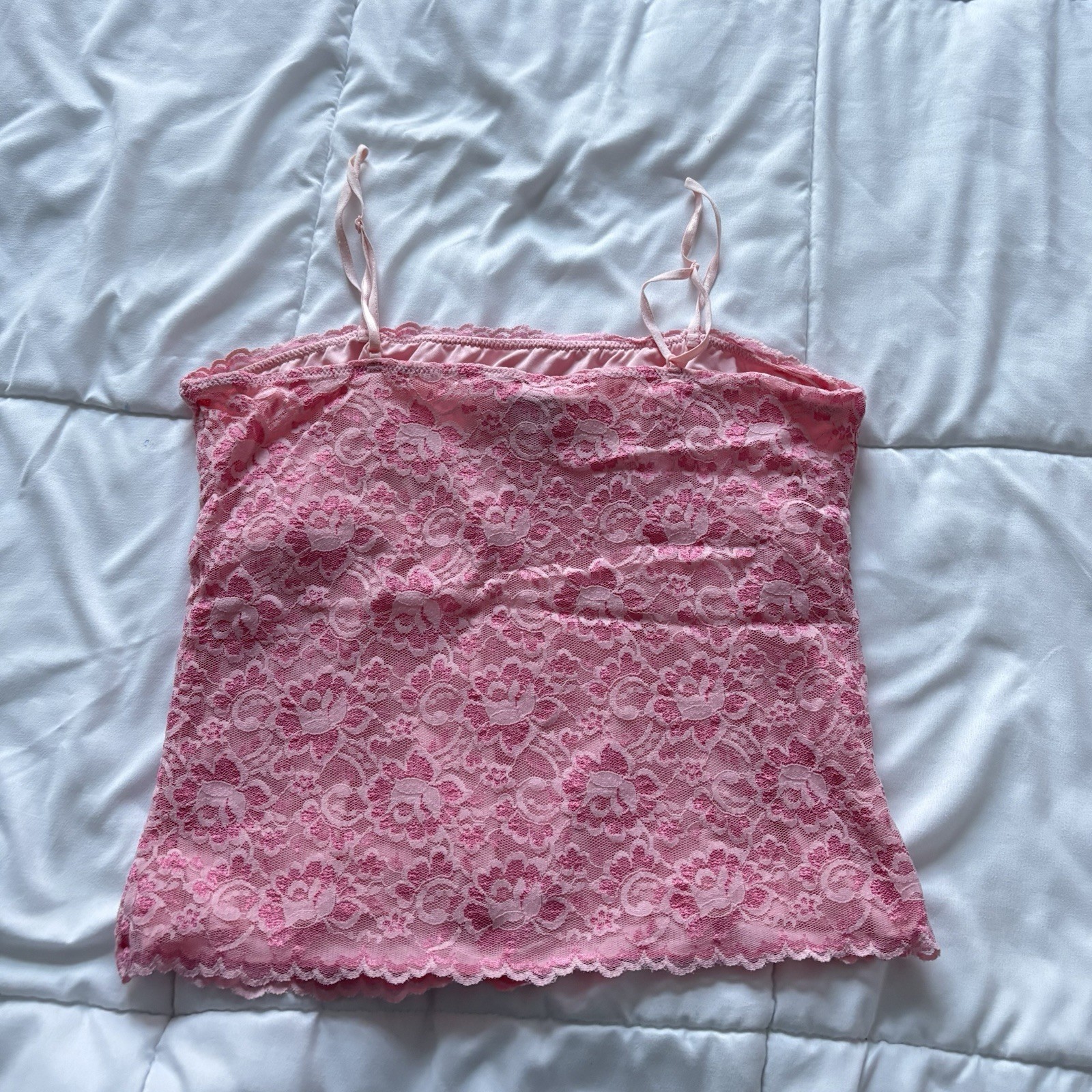 как выглядит Vintage 90s Womens Medium Pink Floral Lace Cami Top Feminine Dainty Coquette фото