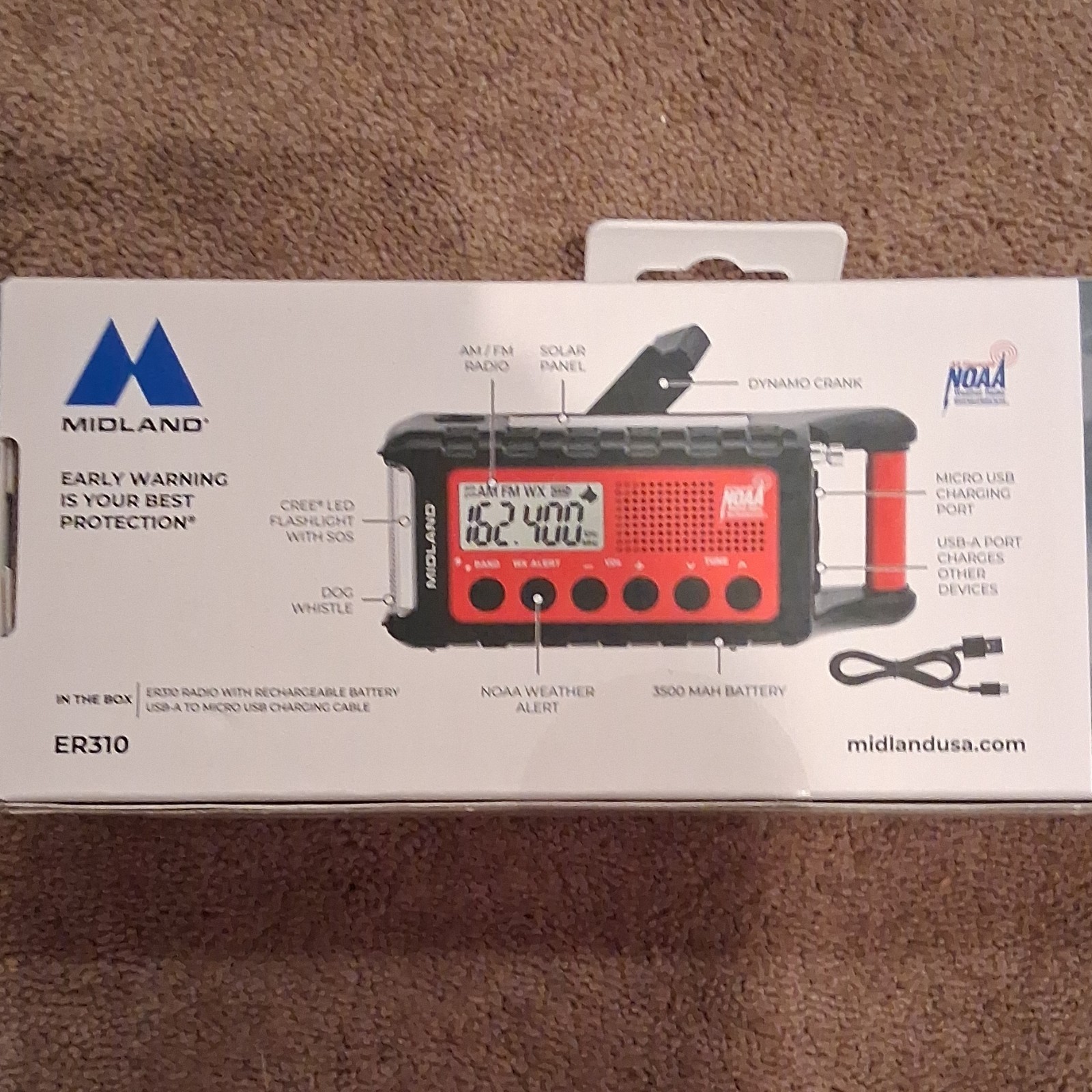 Особенности: Power Bank, Rechargeable Battery, CREE LED Flashlight with SOS, Dog Whistle, NOAA Weather Alert