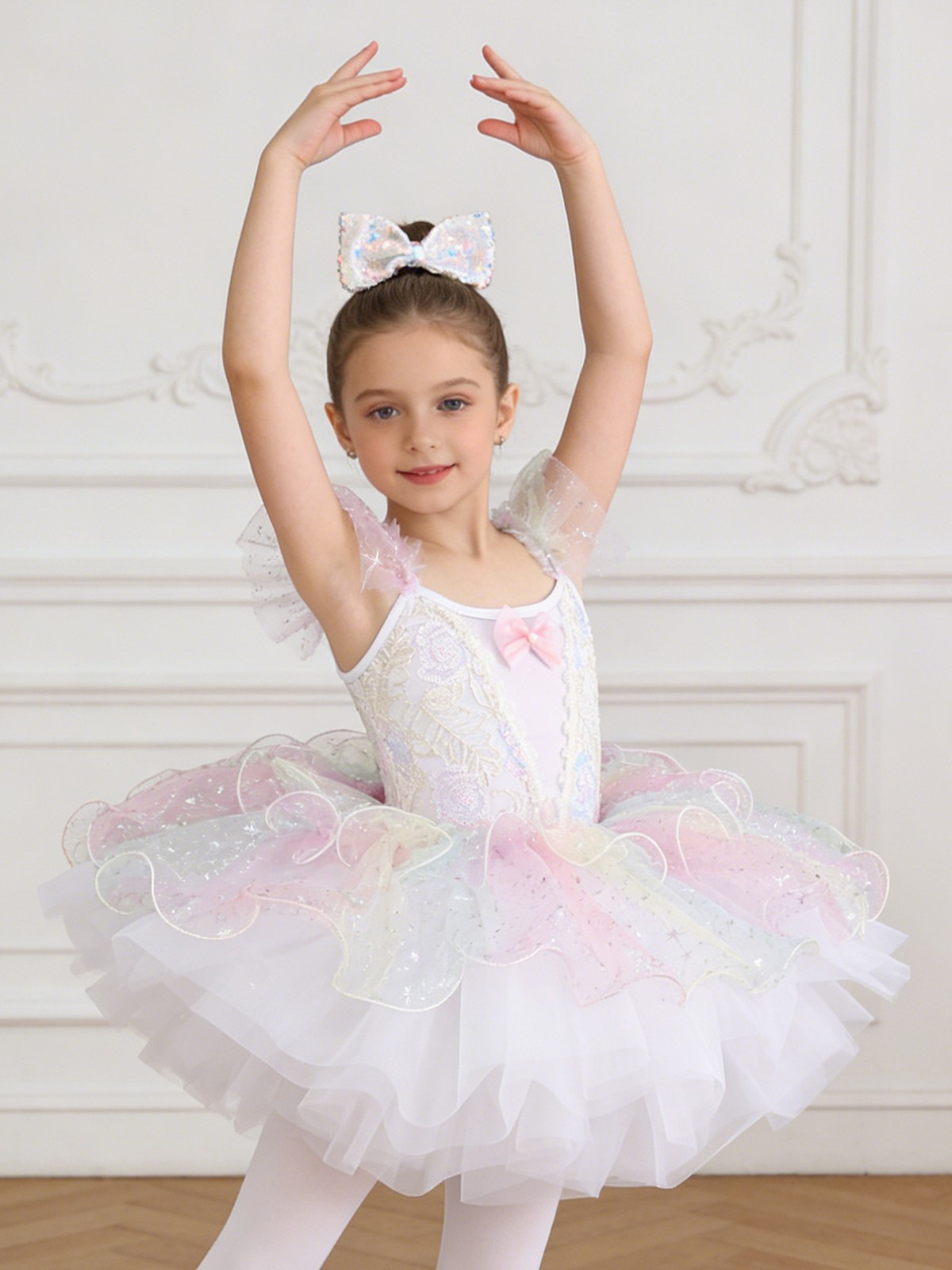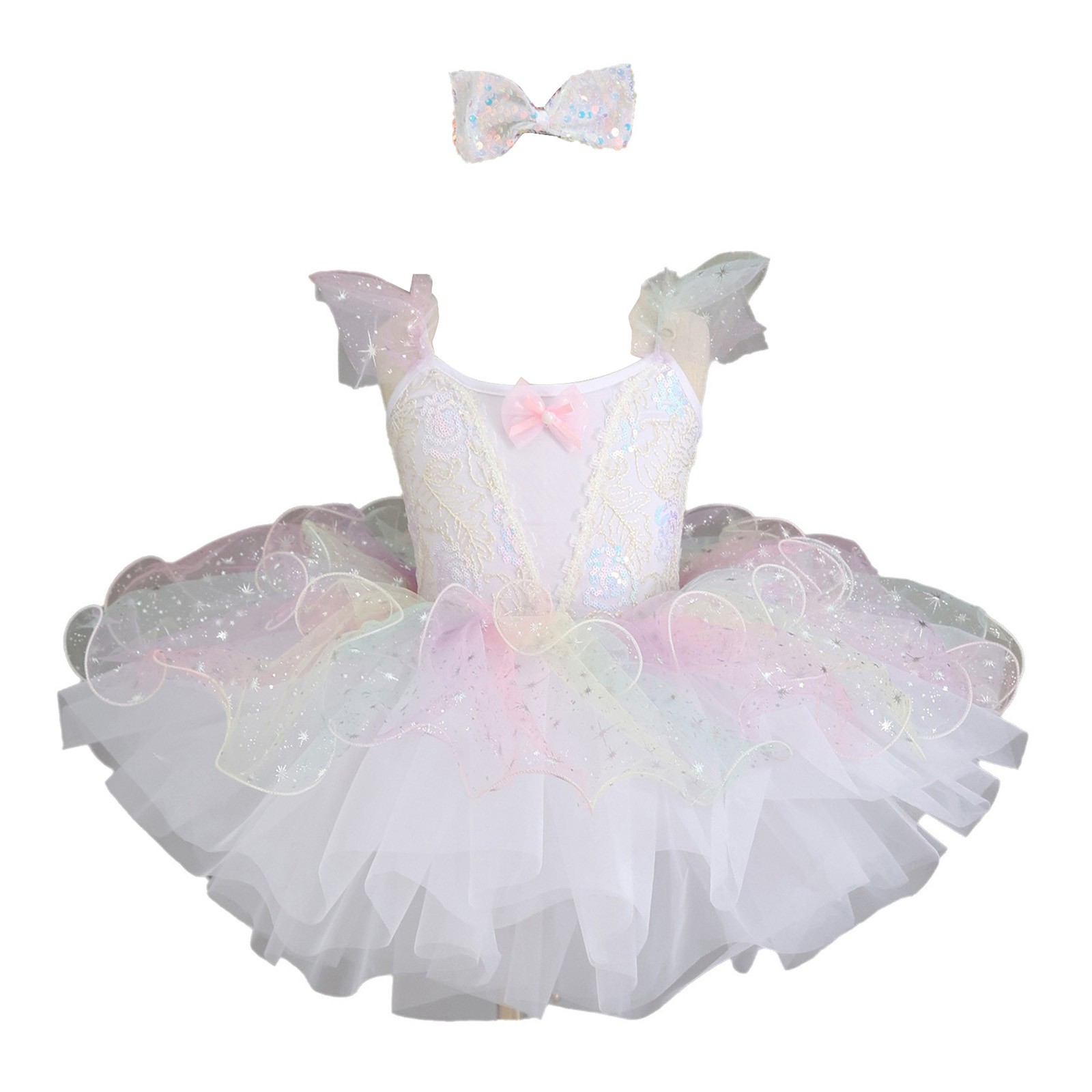 как выглядит Girls Ballet Fitness Outfits Cha-Cha Ballerina Show Tutu Dress Dance Skirted фото