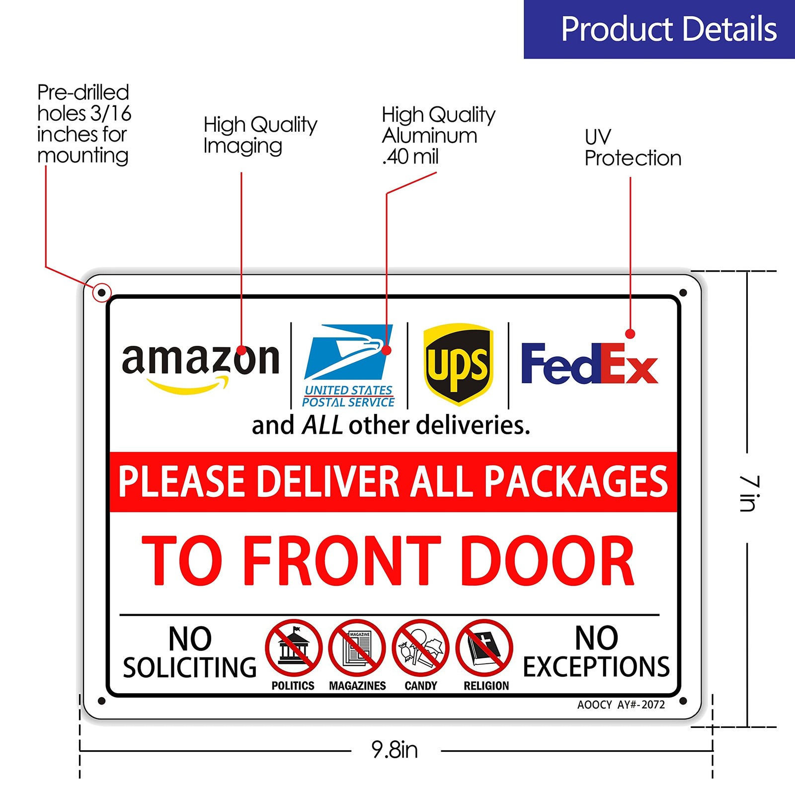 как выглядит Please Deliver All Packages TO FRONT DOOR, Package 7x9 8 inch, DOOR фото