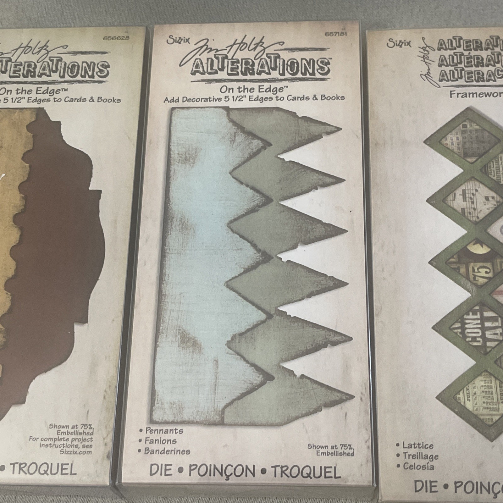 Lot of 3 Sizzix Tim Holtz Alterations Dies Lattice, Pennants, Plaque Postage