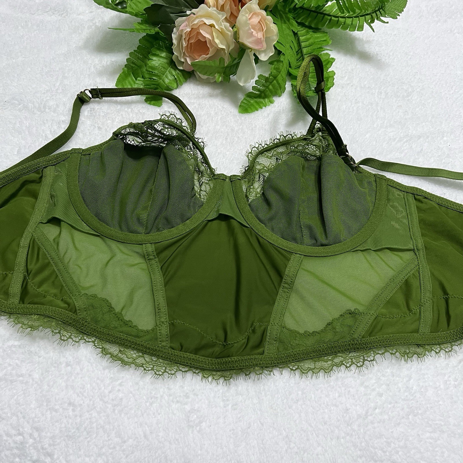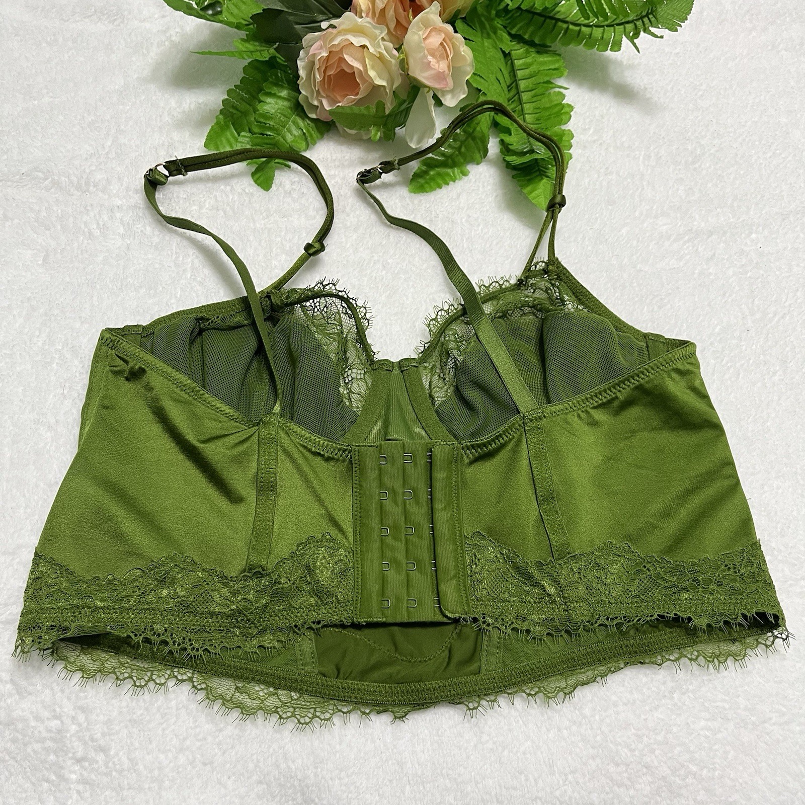 как выглядит Auden Green Lace Corsette Style Bralette Size Medium фото
