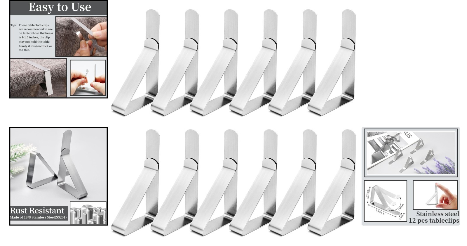 Modern 12 Pack Tablecloth Clips - Fits Tables Up to 1.7 Thick, All Occasions