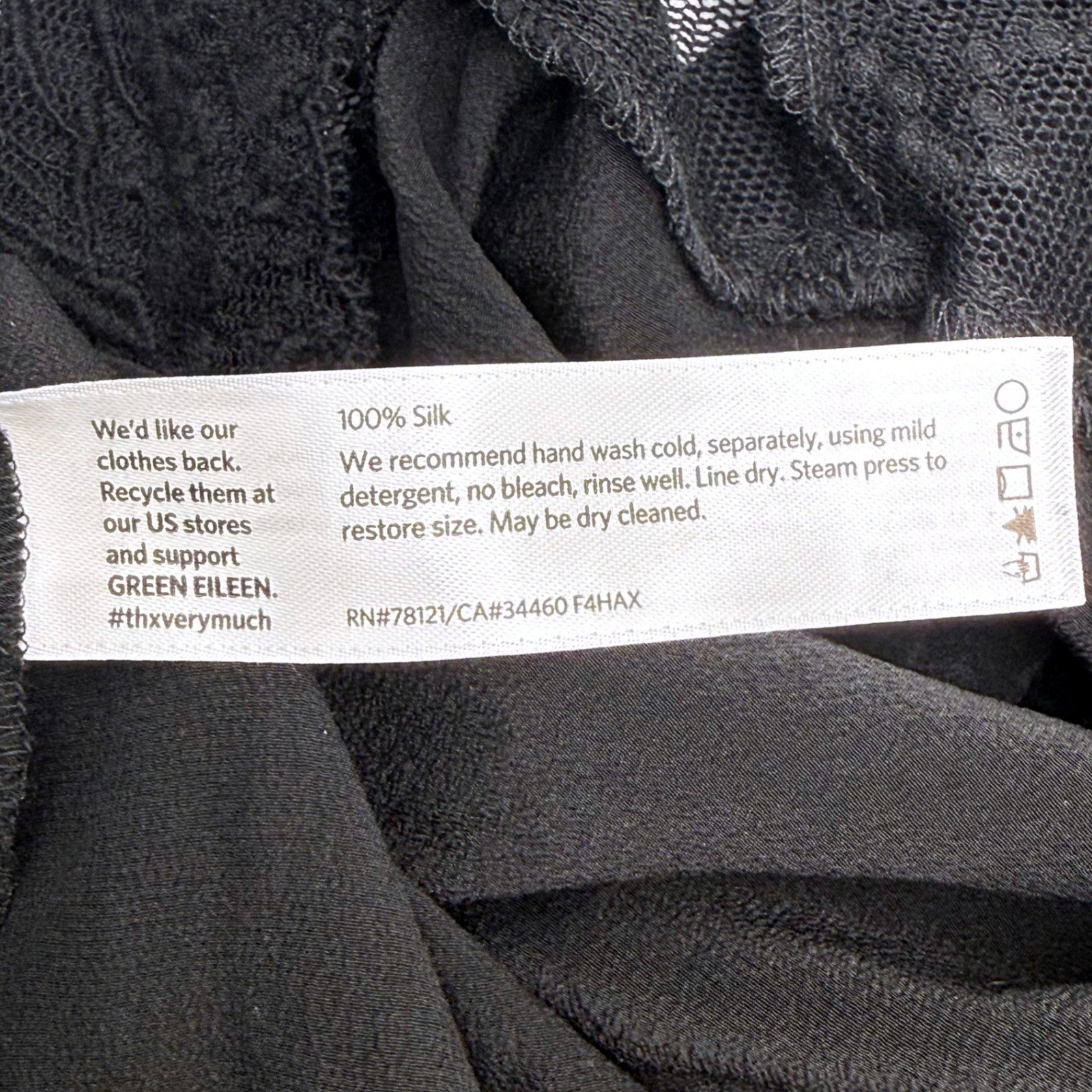 как выглядит Eileen Fisher Black 100 Silk Lace Trim High Low Tank Top XXS фото