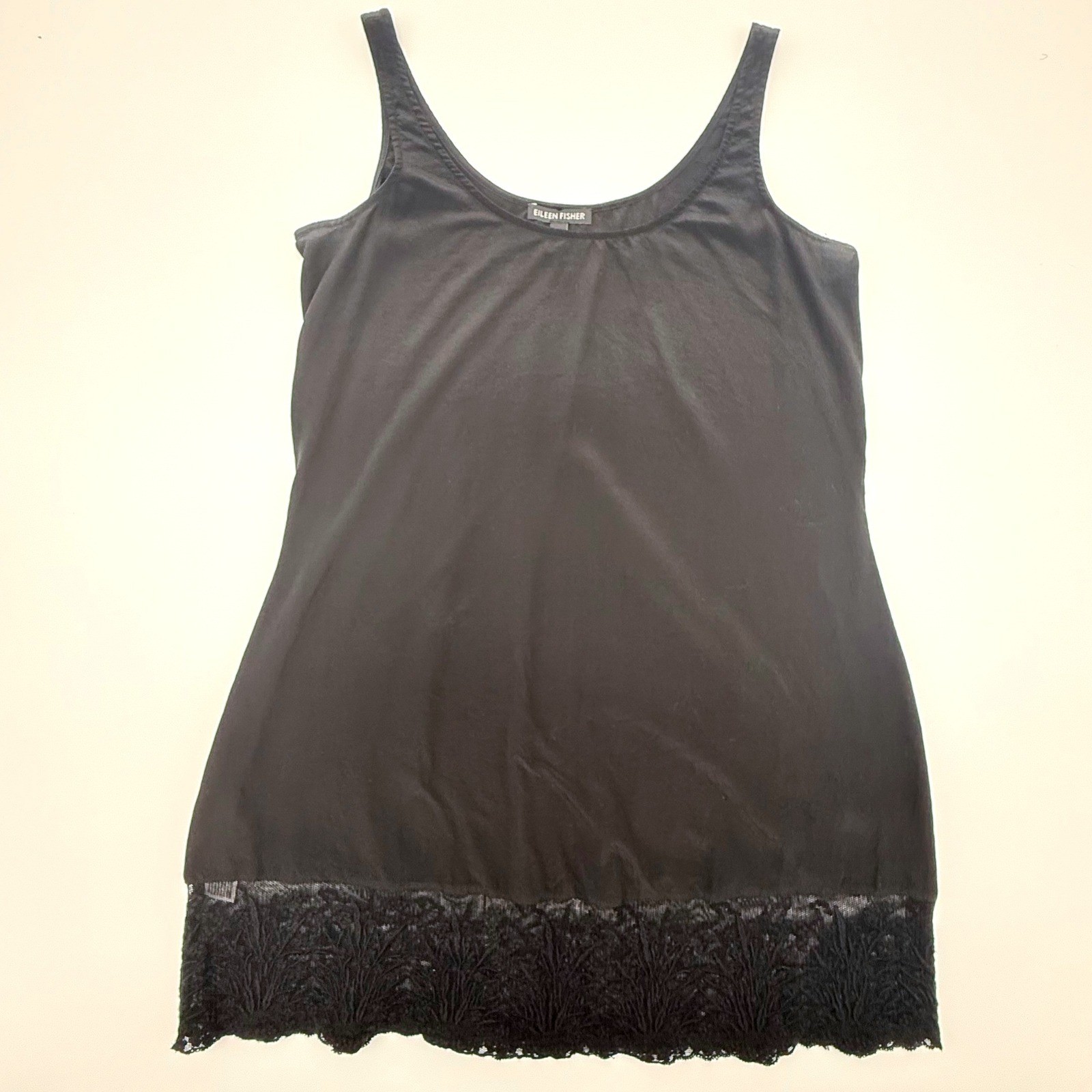Eileen Fisher Black 100 Silk Lace Trim High Low Tank Top XXS