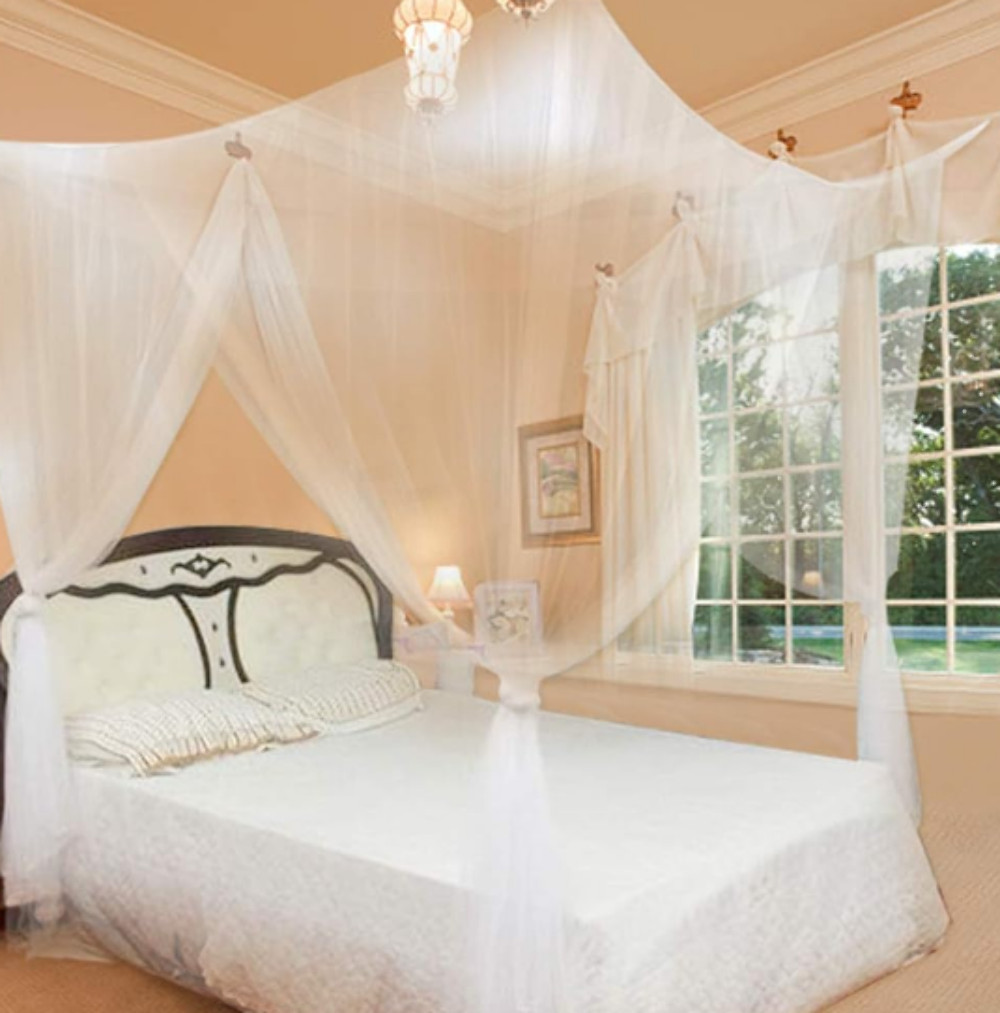 как выглядит 4 Corner Post Mosquito Net Bed Canopy  Elegant White Screen Netting Curtains fo фото