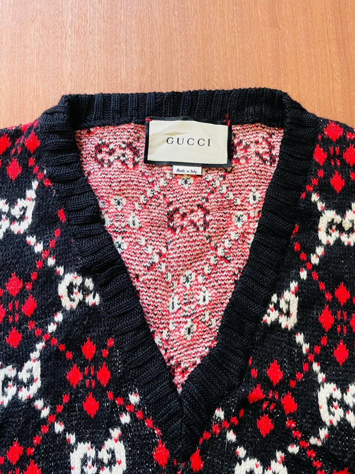 как выглядит Authentic GUCCI GG LOGO Diamond/Argyle Print WOOL Knit CARDIGAN Sweater XL фото