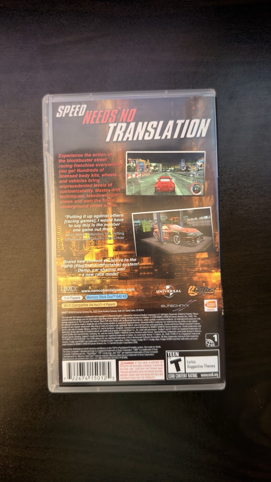 The Fast and the Furious for Sony PSP w Manual