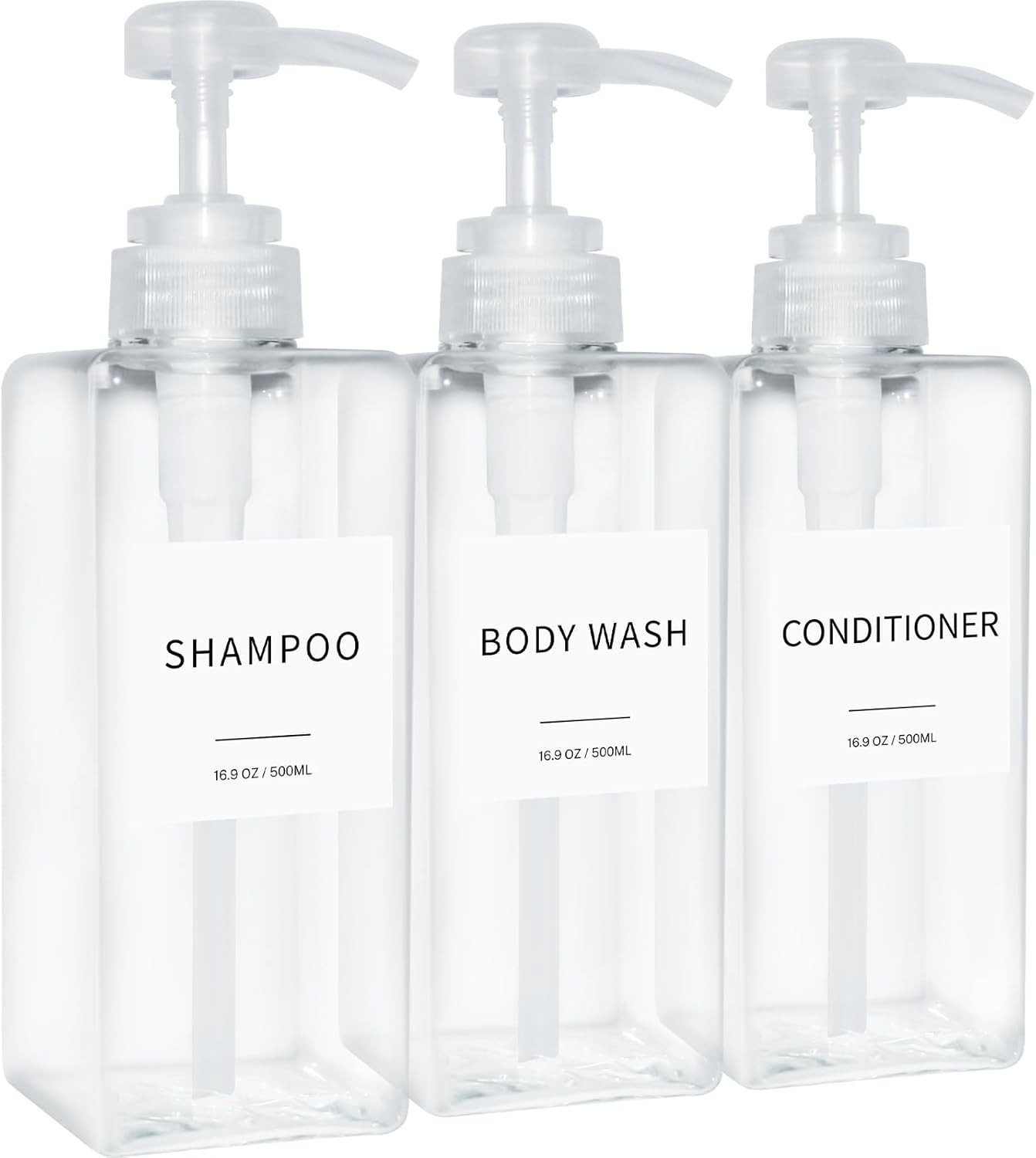 Shampoo and Conditioner Dispenser, Refillable Plastic Shampoo Pump Bottles wi...