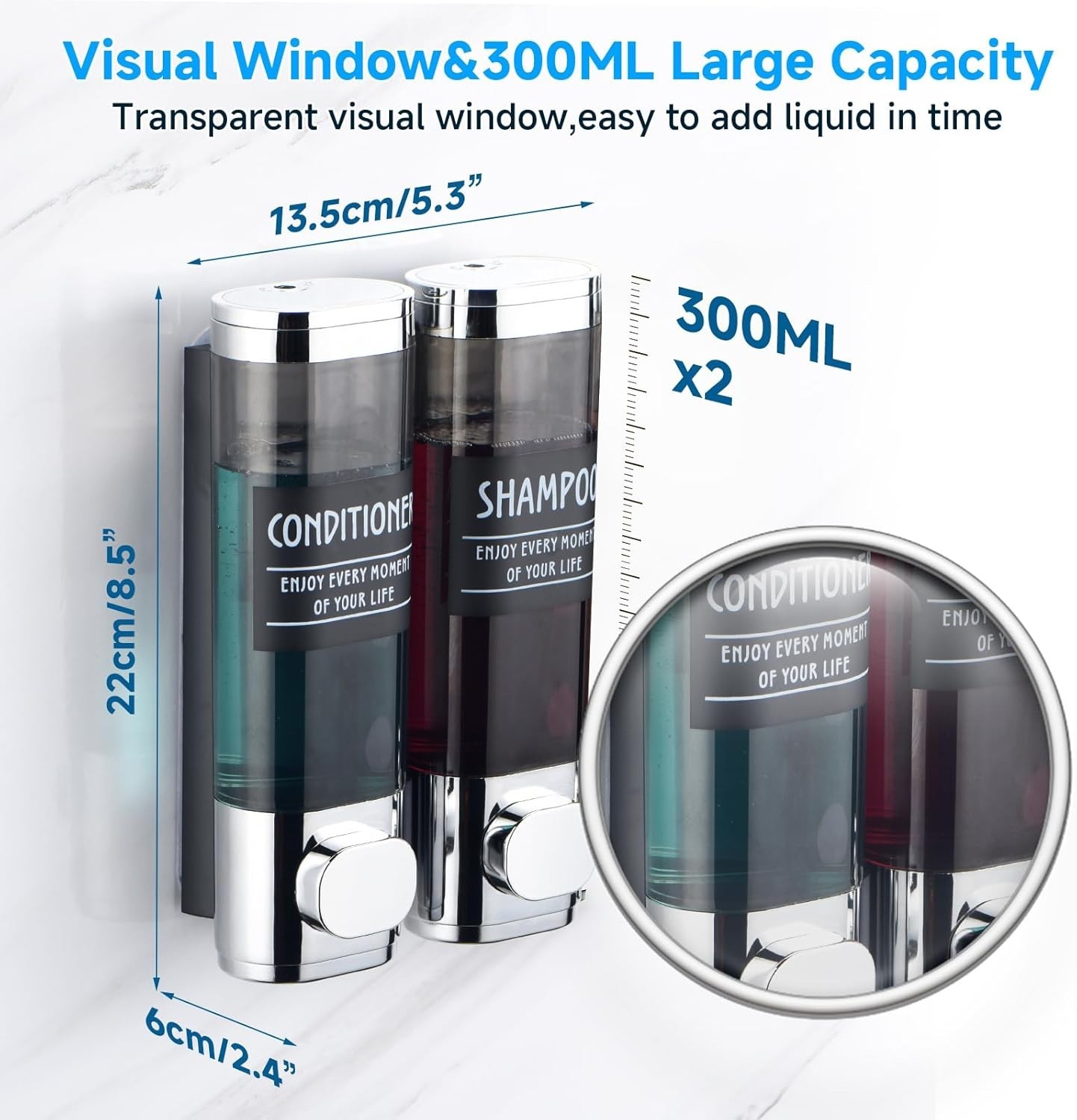 Shampoo and Conditioner Dispenser, Shower Dispenser 2 Chamber No Drill Shampo...