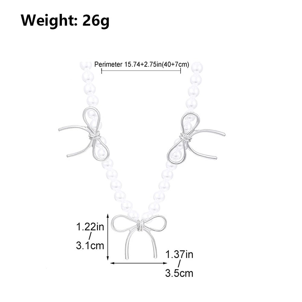 Vintage Bow Pearl Choker Necklace for Women Charm Bowknot Beaded Collarbone Neck