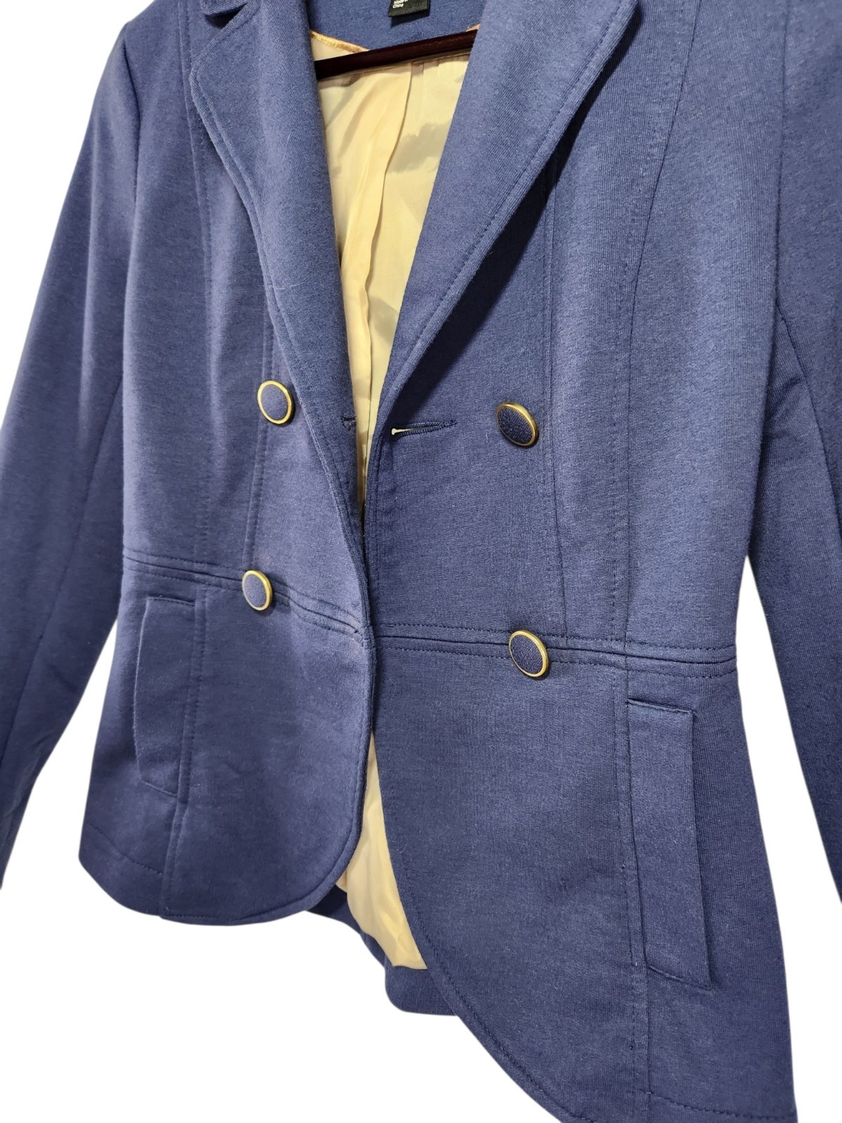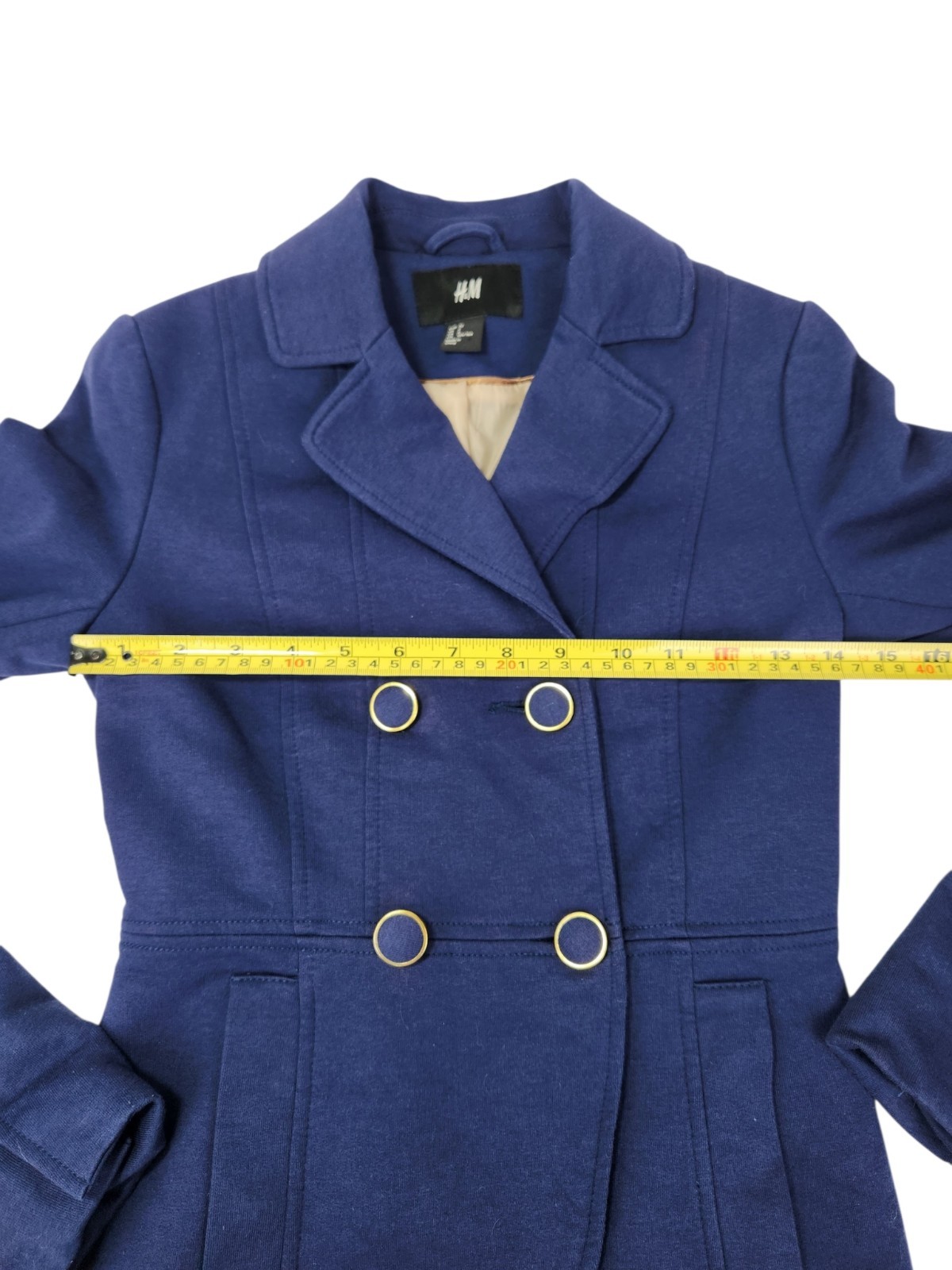 H M Blue Double Breasted Knit Blazer Size 2 Tailored Jacket Preppy Nautical Chic