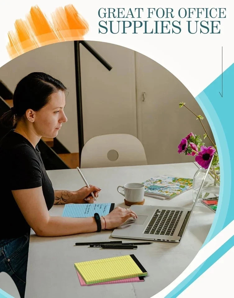 Colored Legal Pads 5x8, 4 Pack, Lined Note Pads 5x8 College Ruled, Note Paper