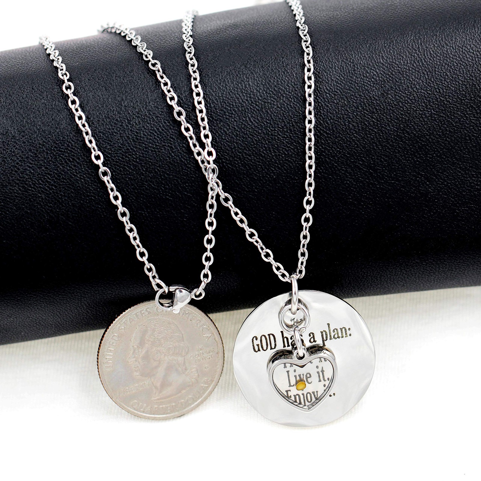 Stainless Steel Disc Inspirational Mustard Seed Faith Necklace - God Has A Plan: