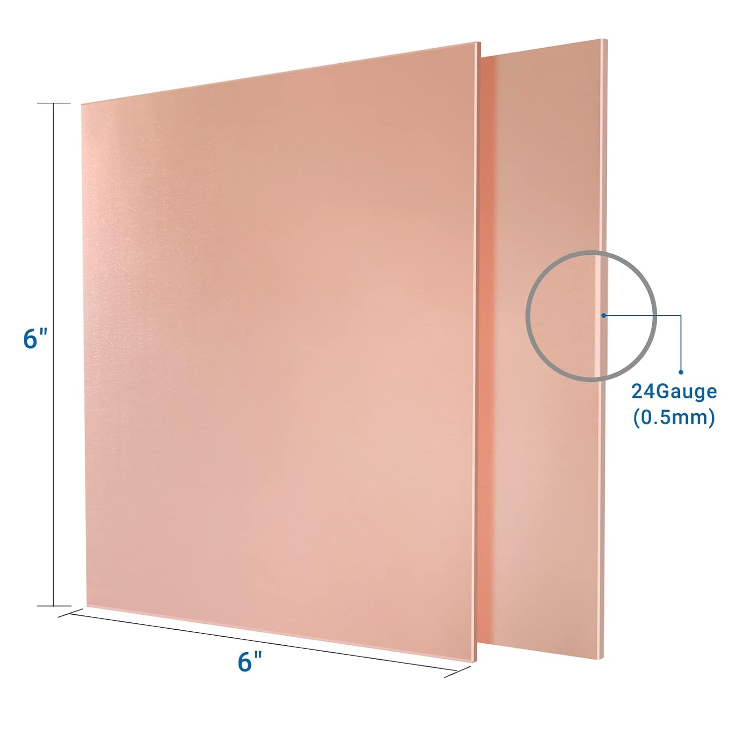 2 Pieces 99.9 Pure Copper Sheet, 6" X 6", 24 Gauge 0.5Mm Thickness, Film Attac