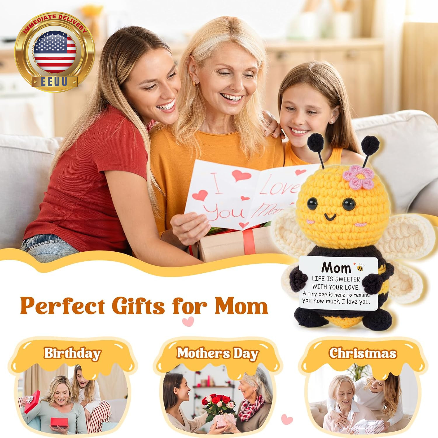 как выглядит Gifts for Mom from Daughter Son, Mom Birthday Gifts - Cute Handmade Crochet Bee фото