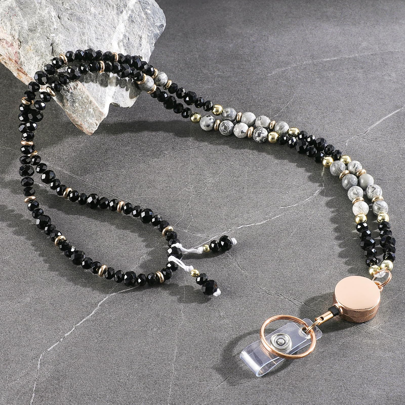 Beaded Retractable Lanyards for Badges and Keys with Durable Wrist Strap, Nur...