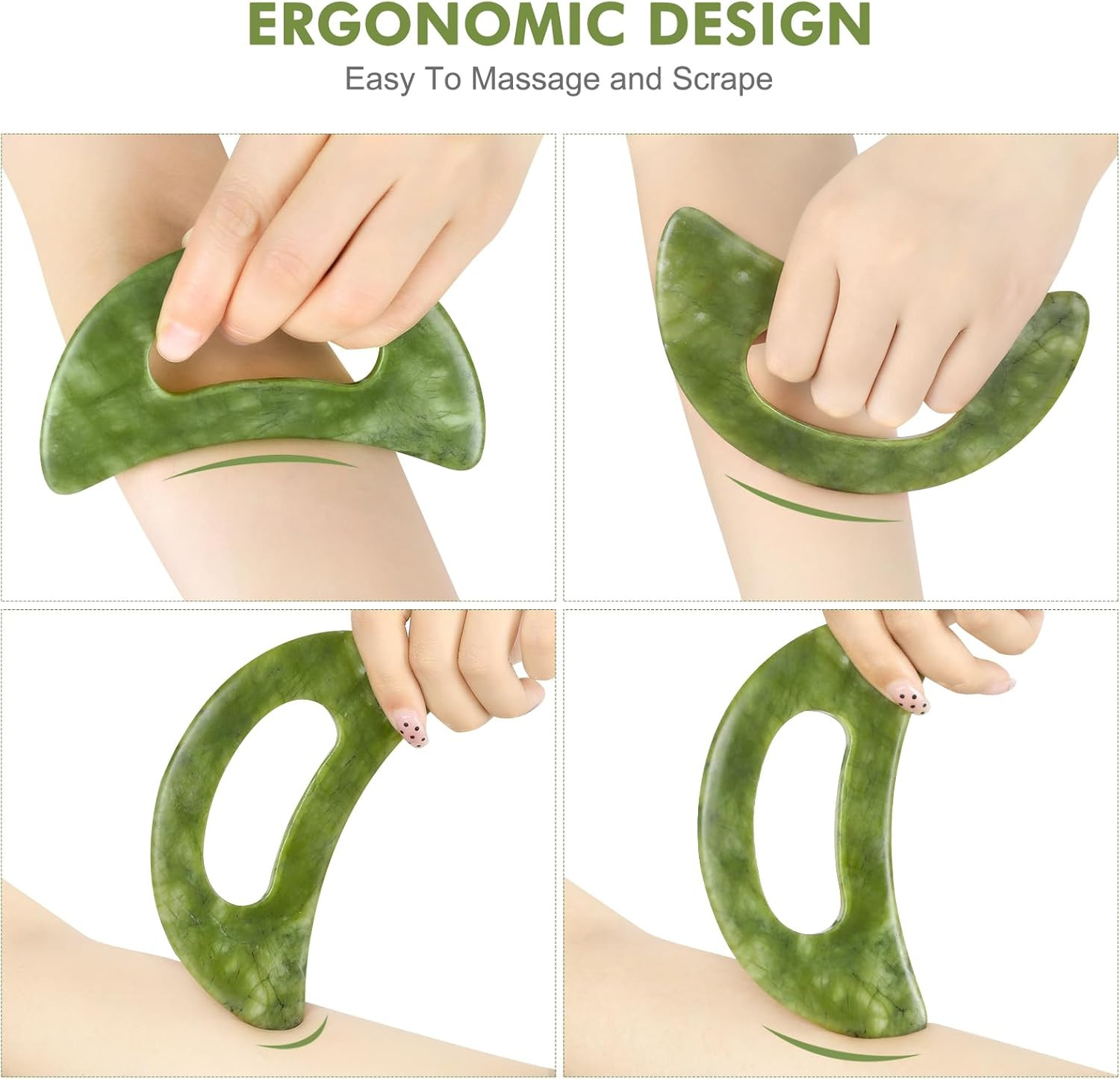 как выглядит 2 PCS Jade Stone Gua Sha Massage Tool Set Body Guasha Tool with Handle Muscle Sc фото