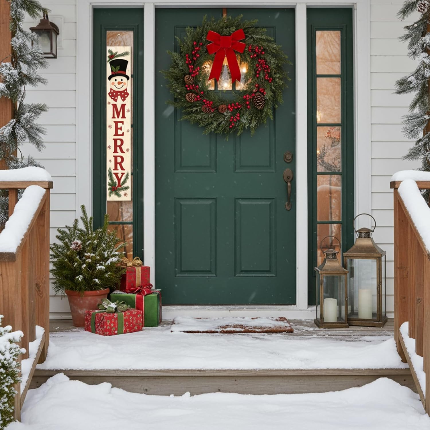 Christmas Welcome Porch Sign 47 Inch Snowman Wooden Hanging Sign Plaques Holiday