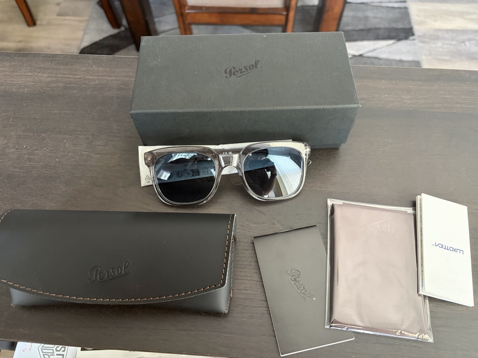 как выглядит Persol PO3323S Square Gray Acetate Sunglasses Blue Gradient Lens for Men фото