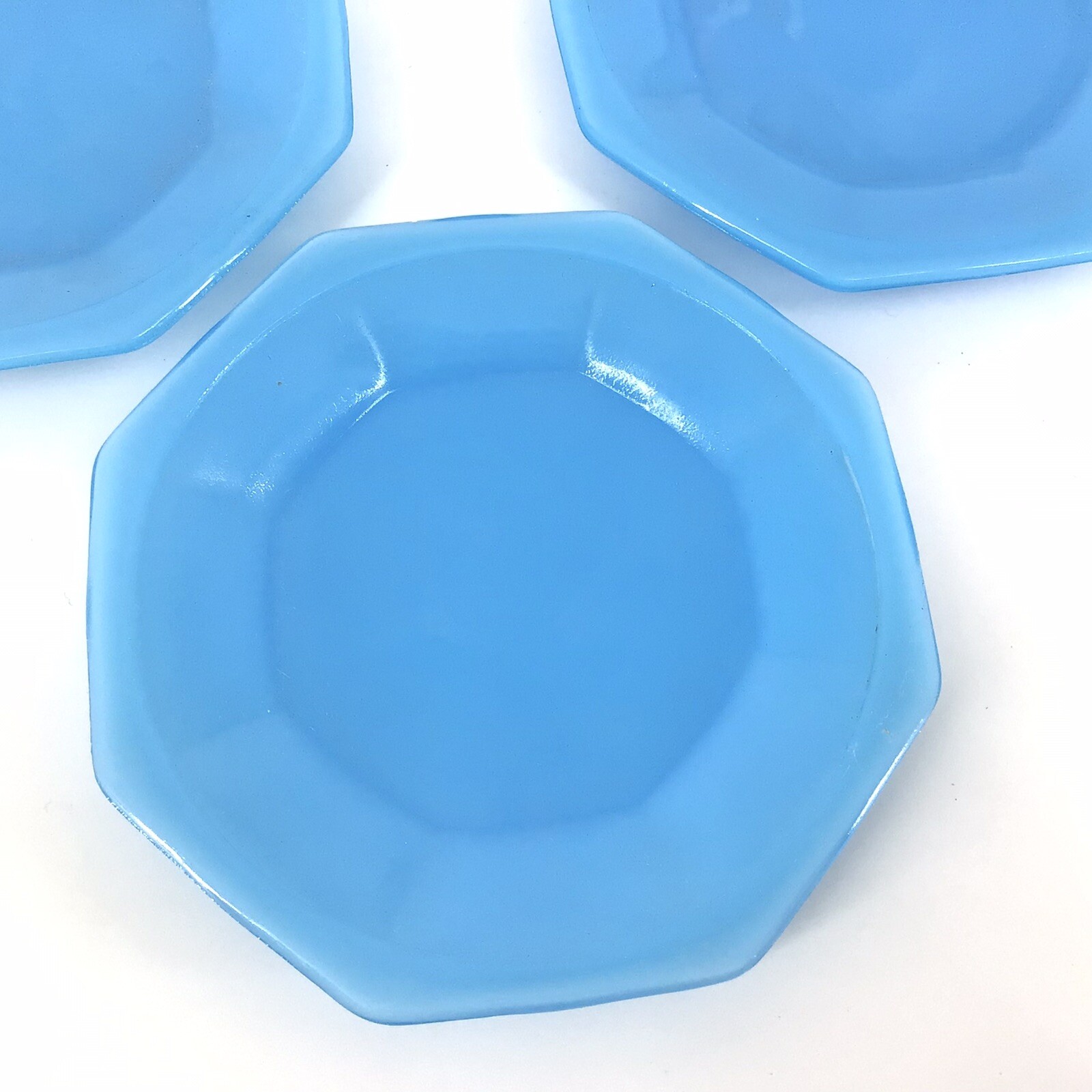Akro Agate Child's Toy Plates Blue 4 1/4 Set of 3 Octagon Vintage 002