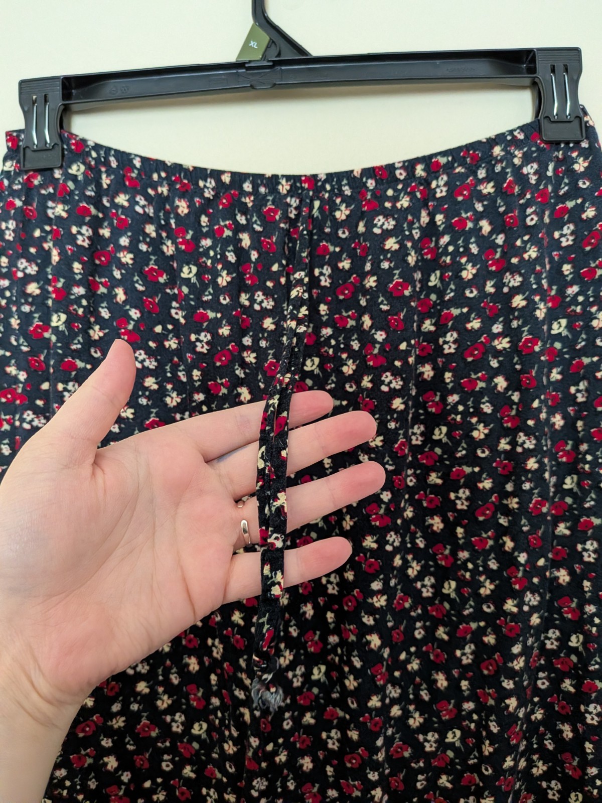 как выглядит VintageBlue Red And Cream Floral Print Midi Long Length Skirt фото