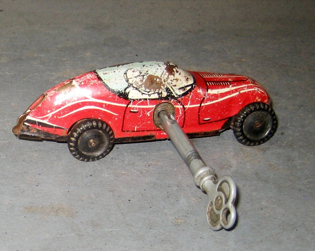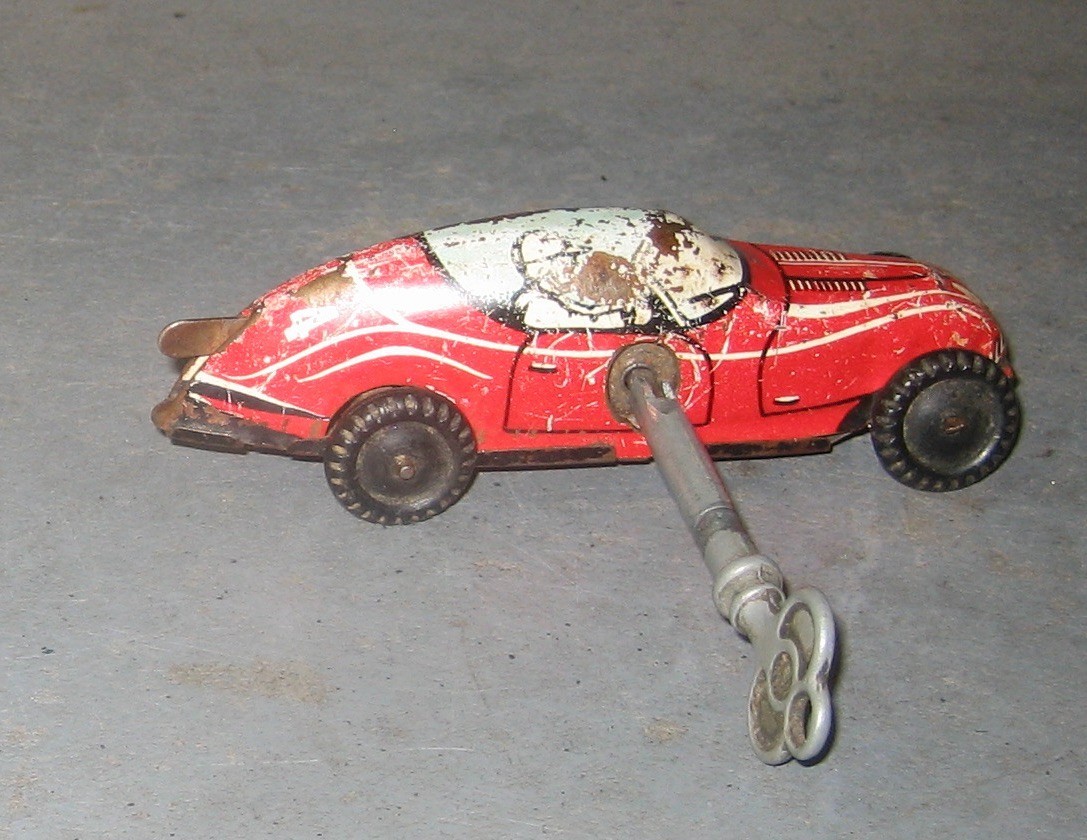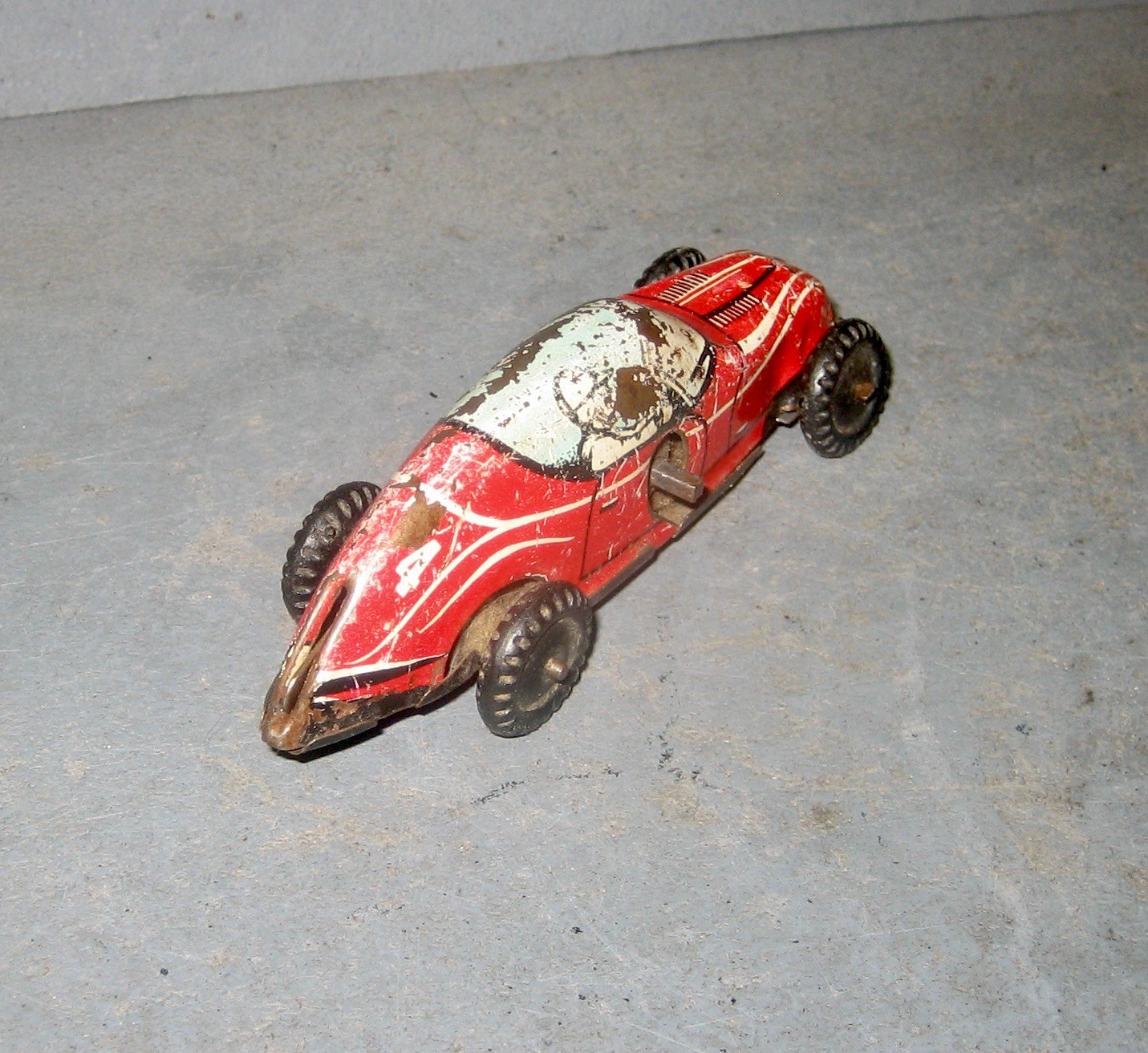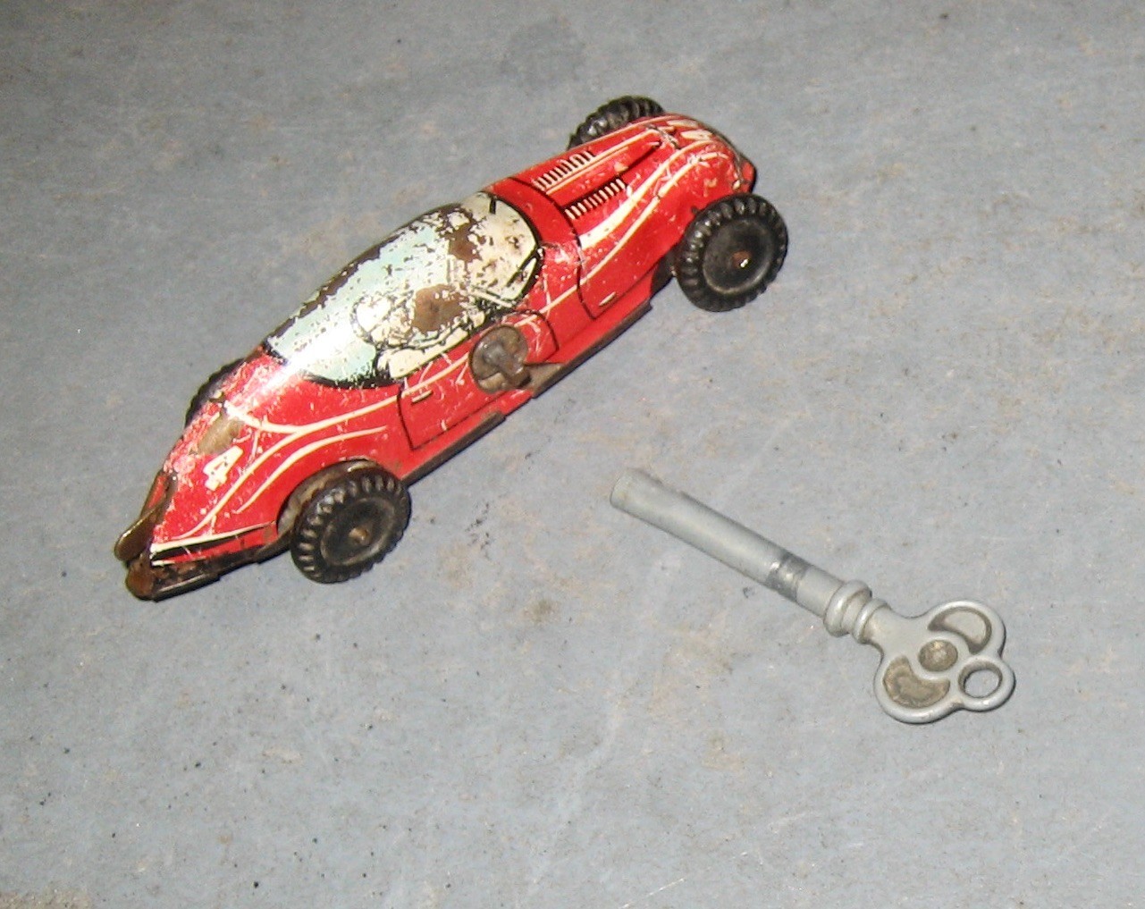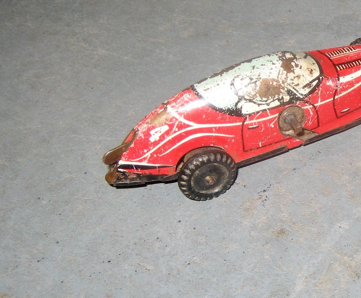 Vintage Marx Tin Litho Toy Windup Speedway Racer 44, not running - homemade key