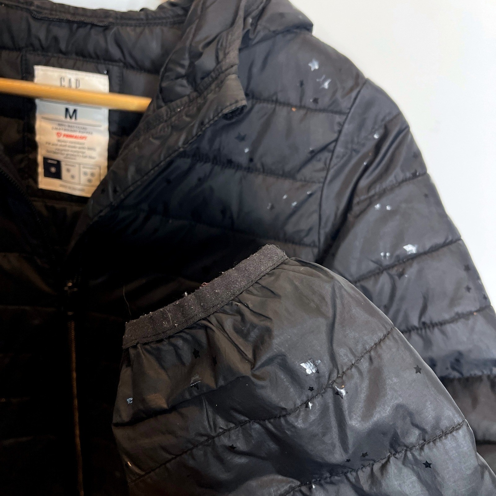 Gap Kids Black Puffer Primaloft Jacket Star Print Hooded Zip Up Size M