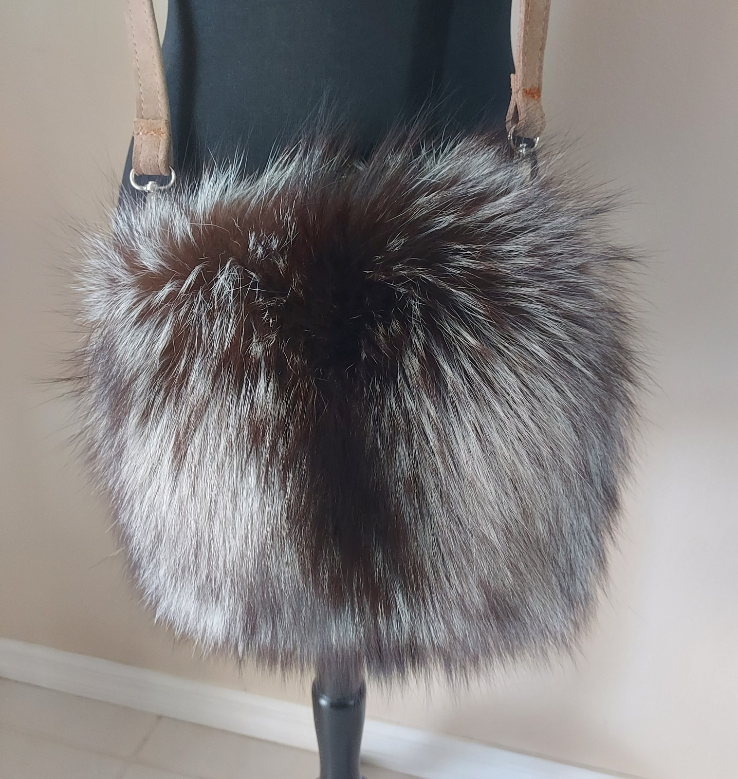 как выглядит Real Silver Fox Fur Hand Muff Hand Warmer Black Lining фото