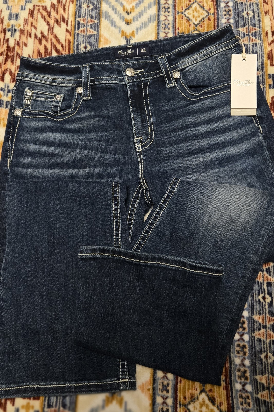как выглядит Miss Me Dark Blue Embroidered Cross Bootcut Stretch Denim Jeans Women фото