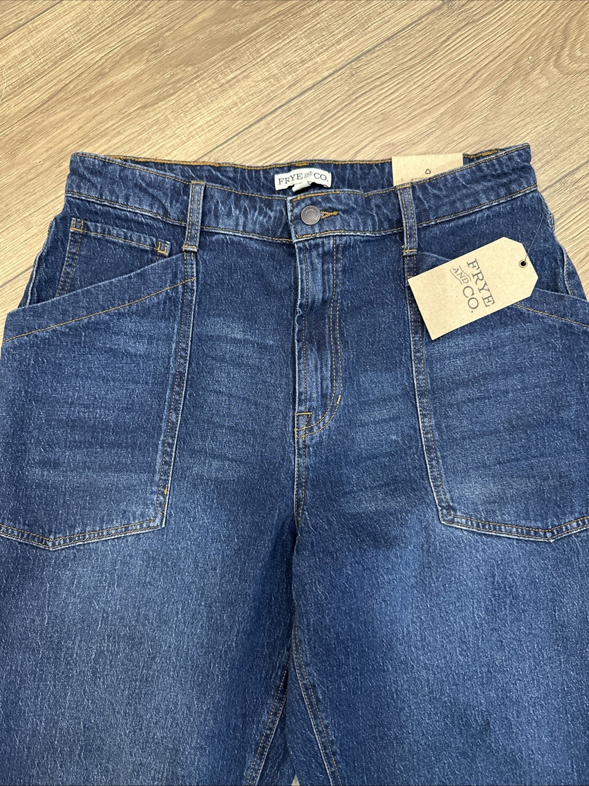 как выглядит NWT Frye Barrel Jean Womens 10 Medium Wash Blue High Rise Curved Leg Denim фото