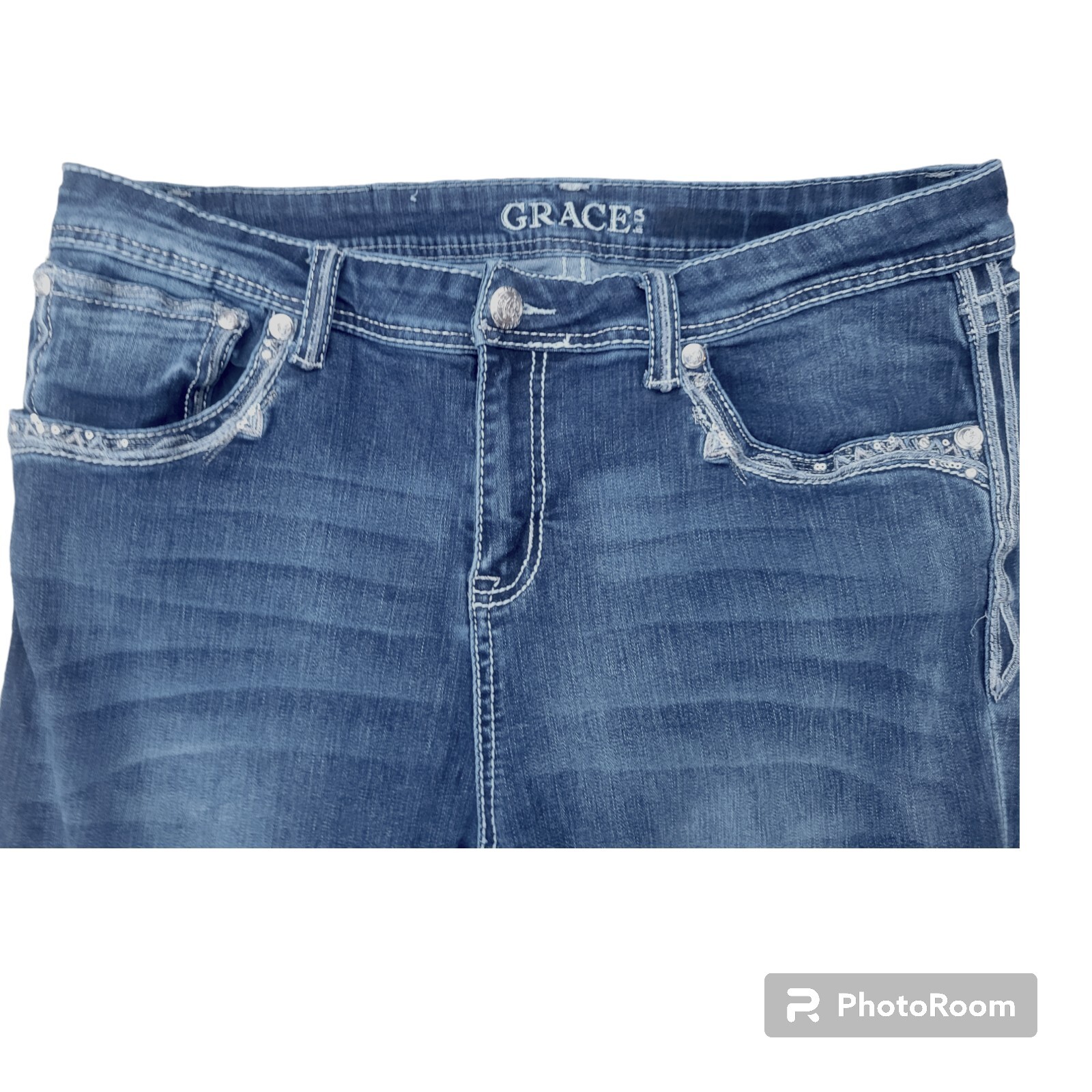 как выглядит GRACE in LA P-Straight Embellished Faux Flap Pkt High-Rise Jeans Plus Sz 17 фото