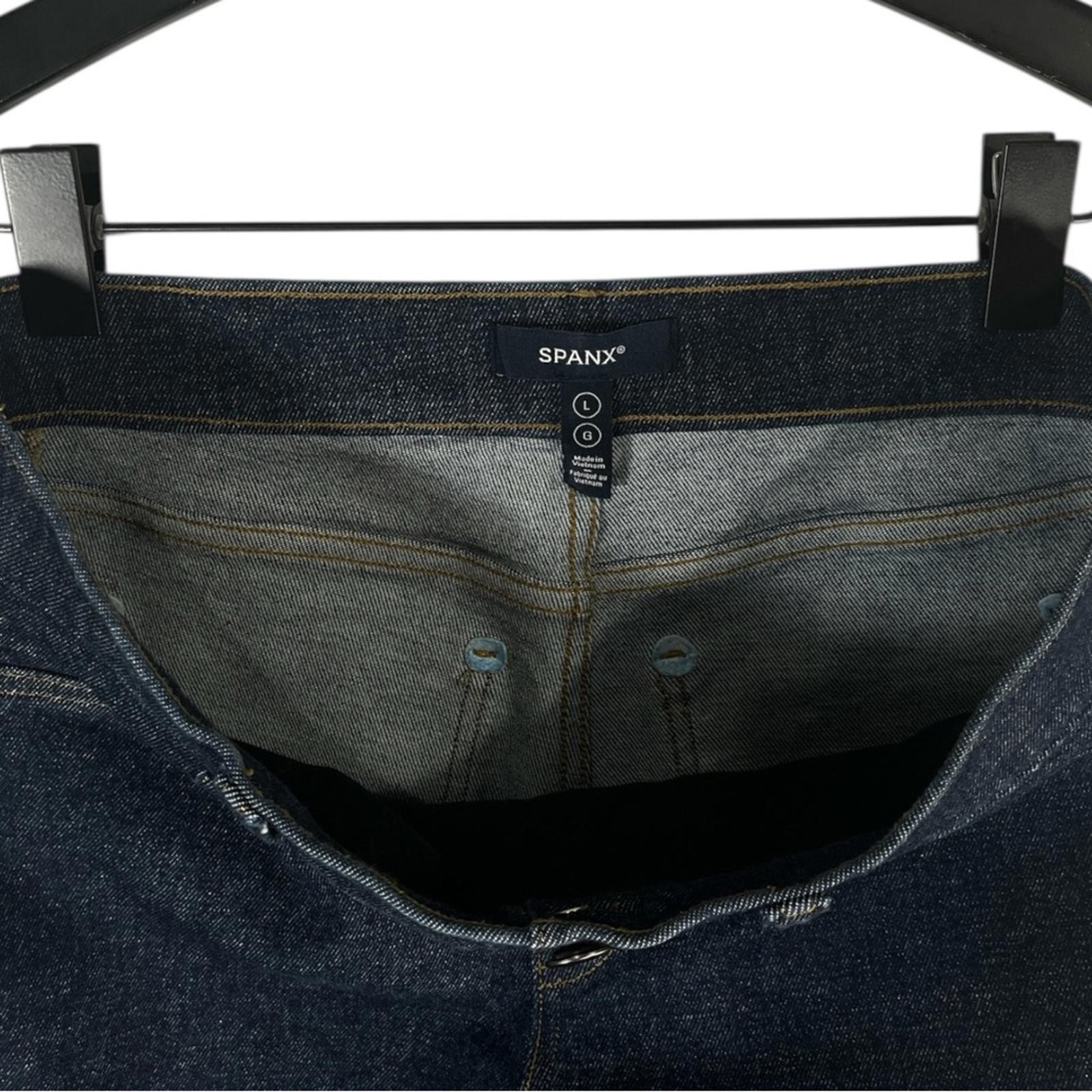 как выглядит SPANX High Rise Wide Leg Pull-on Jeans size Large in Dark Raw Indigo фото