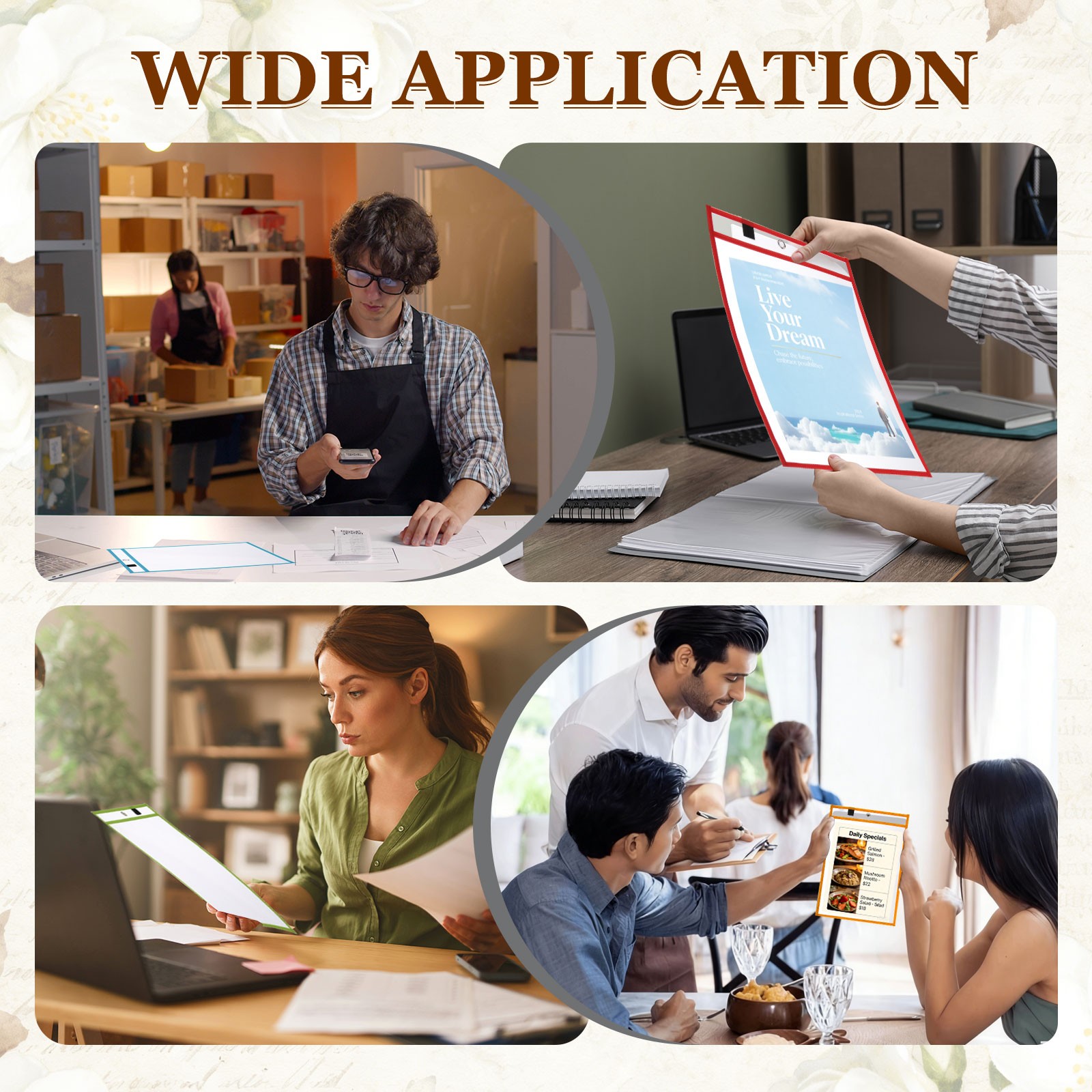 как выглядит 5Pcs Job Ticket Holders, 14"x10" Dry Erase Pockets for Office Reusable, Red фото