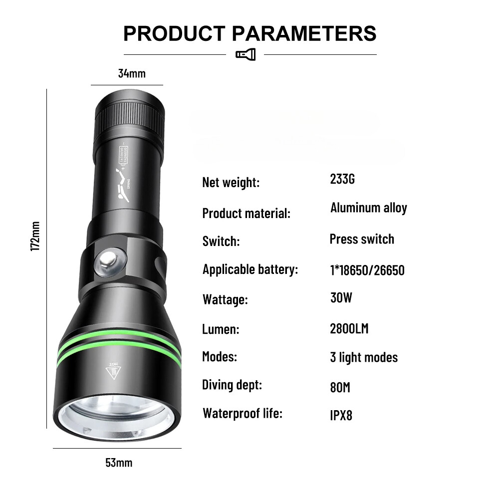Dive Lights Scuba P70 LED Flashlight Waterproof Underwater Lights Diving Torch