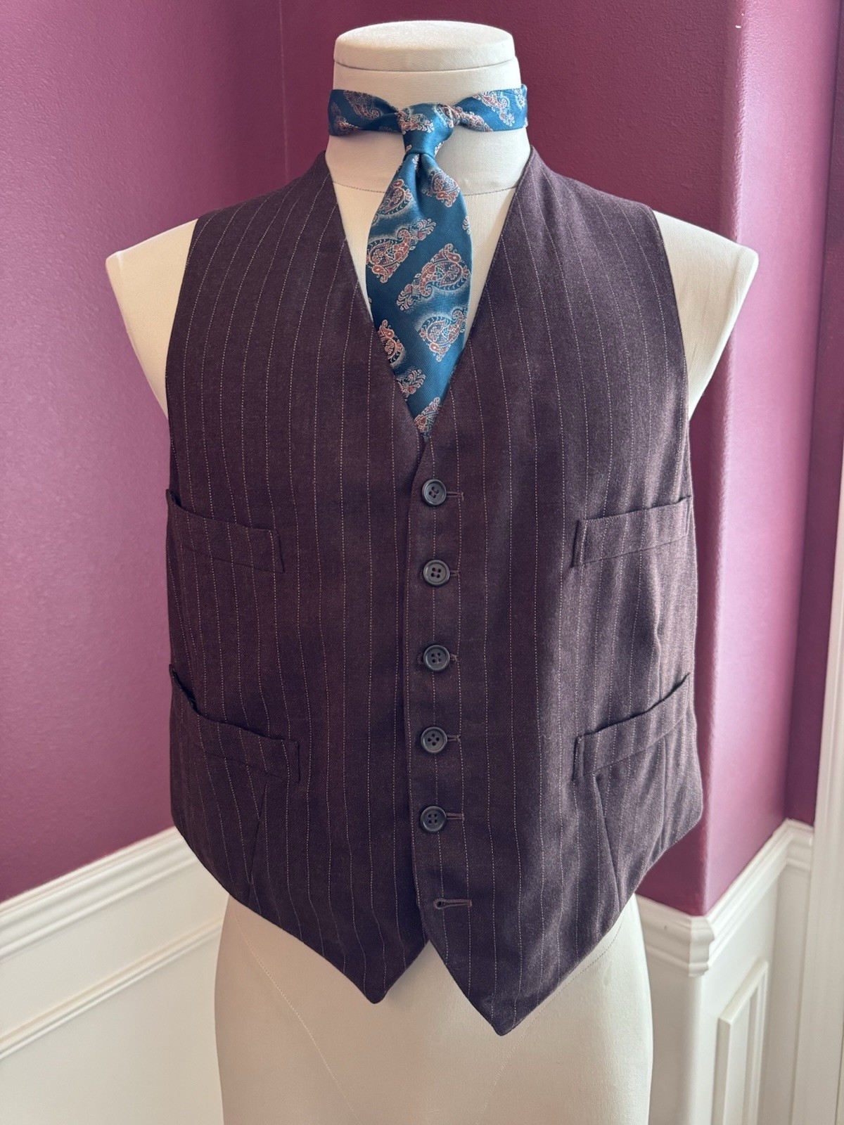 как выглядит 1940s Chocolate Brown Pinstripe Jacket And Vest Union Made 40R Adam s Clothes фото