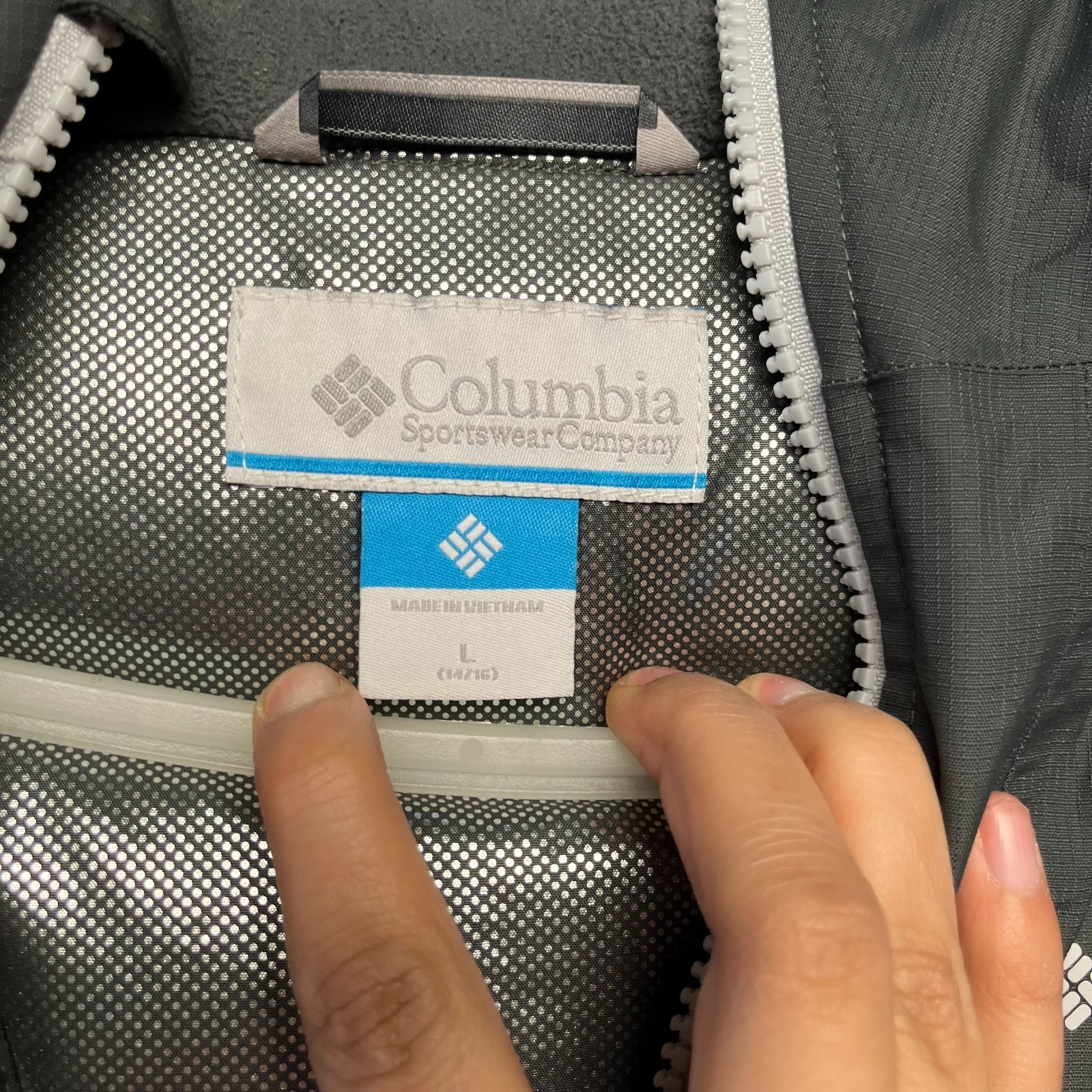 как выглядит Columbia Youth Boys Jacket Size L14/16 Grey White Omni-Tech Rain Hood Waterproof фото