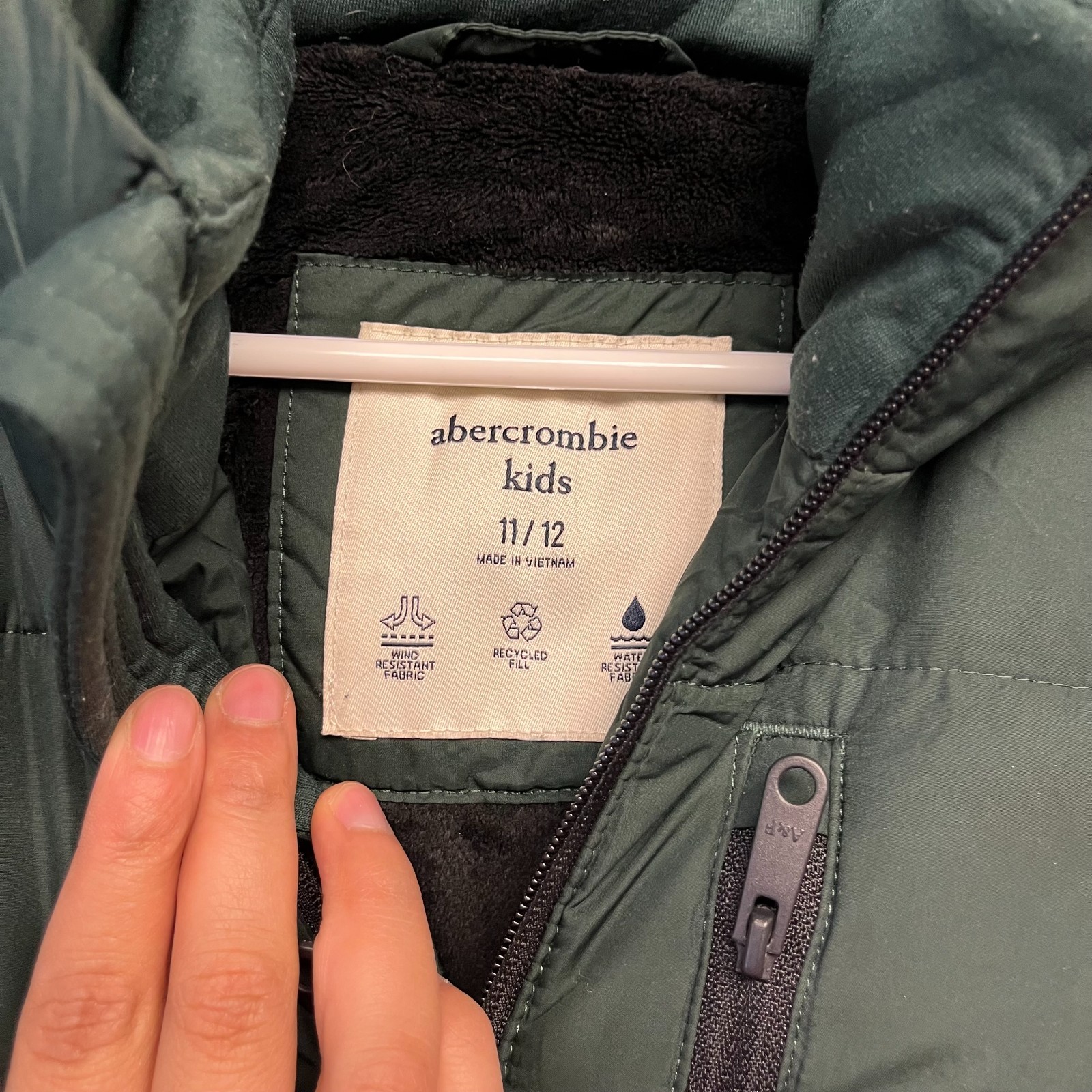 как выглядит Abercrombie Kids Unisex Puffer Jacket Size 11/12 Green Hood Water Wind Resistant фото