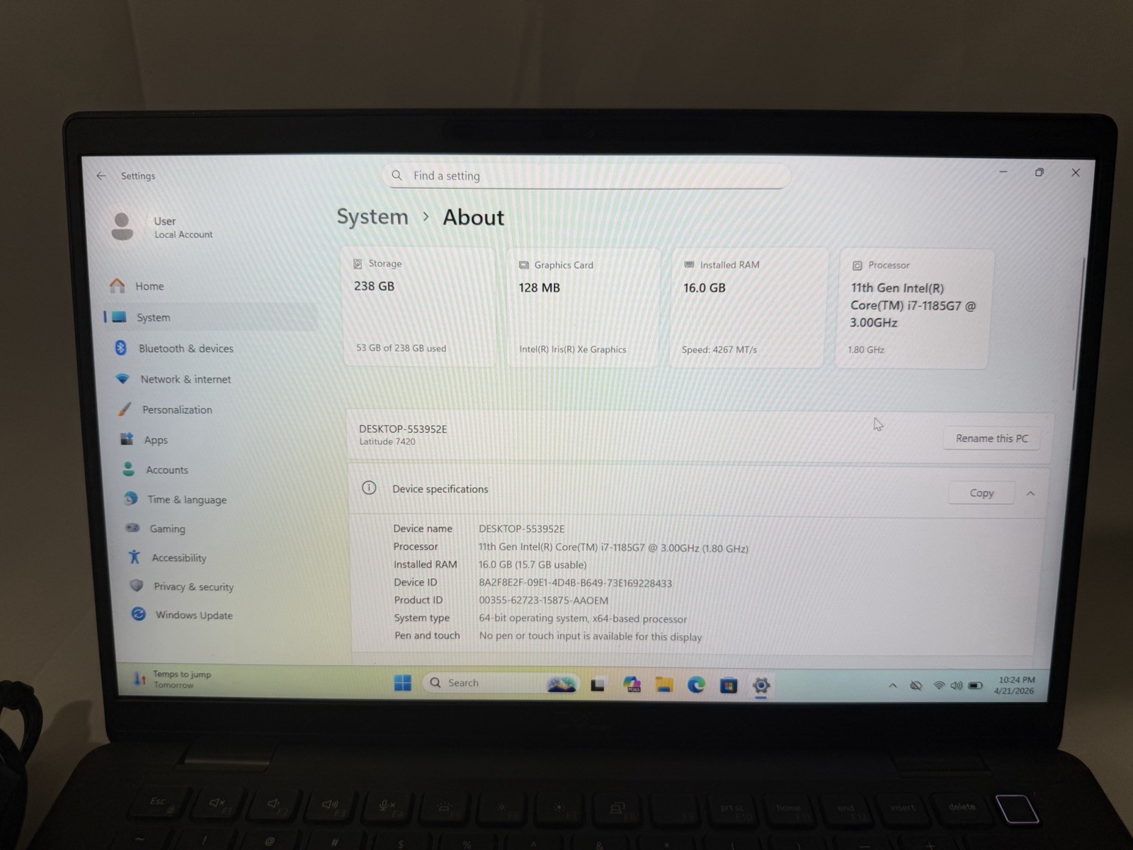 Dell Latitude 7420 14 i7 1185G7 3.00GHz, 16GB RAM, 256GB NVMe SSD Win11Pro